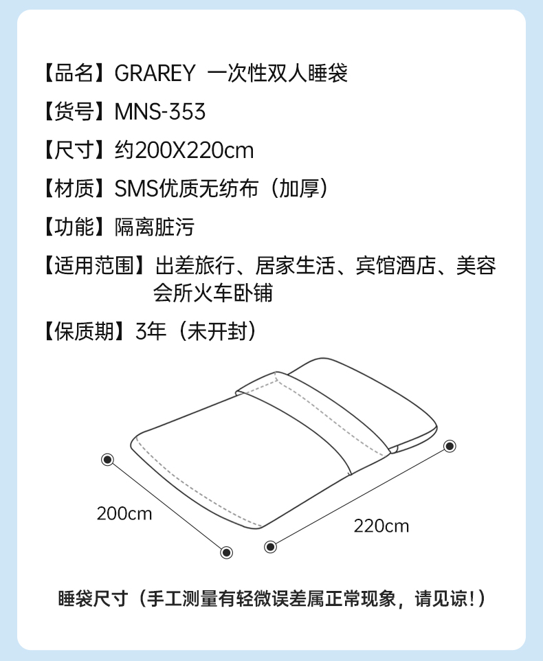GRAREY(格瑞亚)一次性双人睡袋 200x220cm