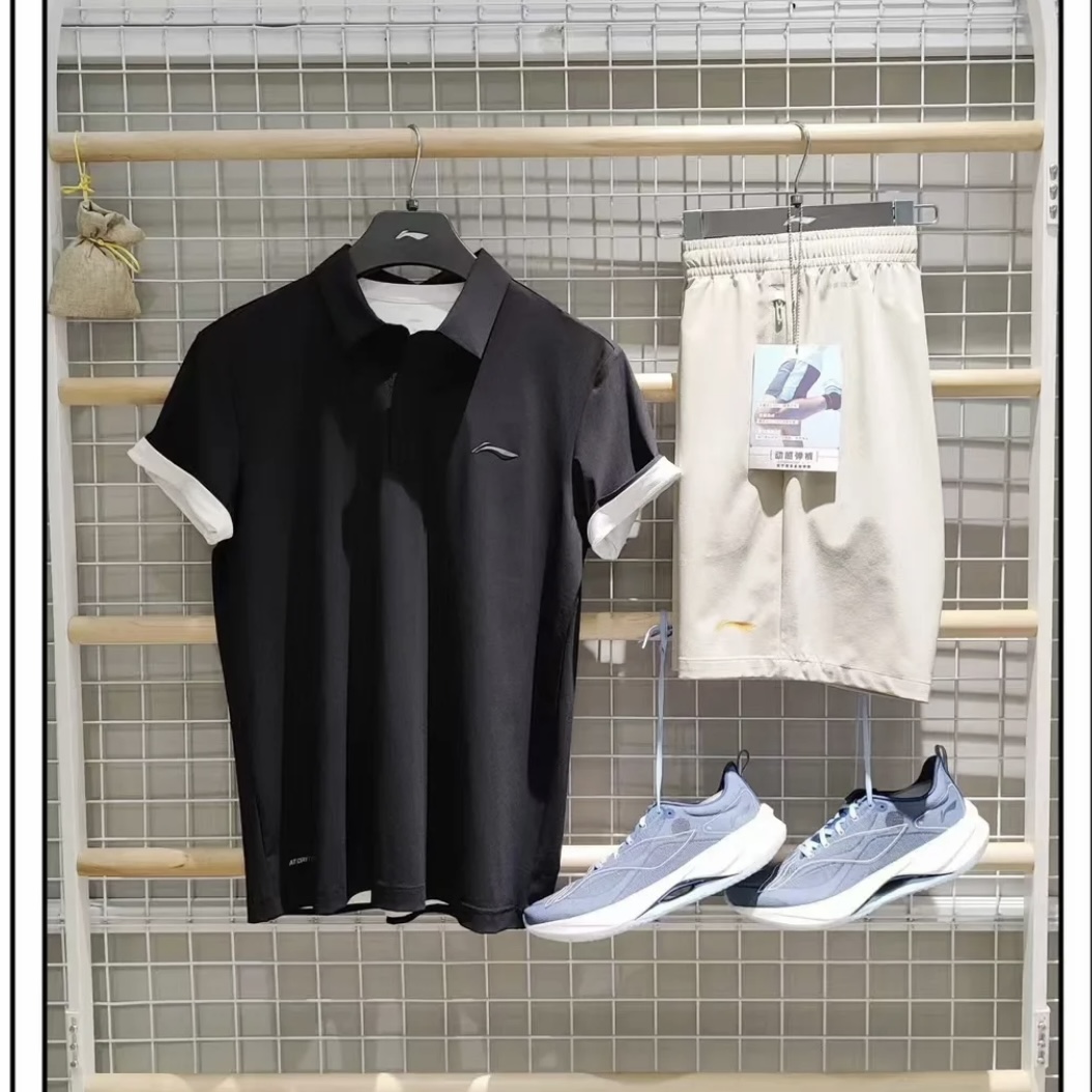 正品保真,李宁短袖POLO衫男夏季速干凉爽上衣排汗透气跑步训练T恤 压胶门禁 面料很舒服 垂感很足!