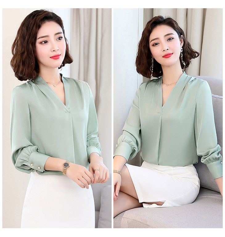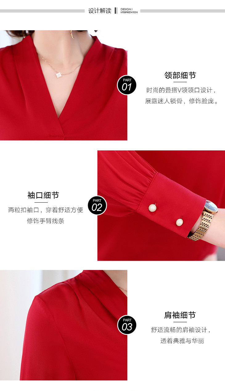 【服饰鞋包】真丝衬衫女春装新款韩版宽松气质桑蚕丝V领显瘦长袖衬衣