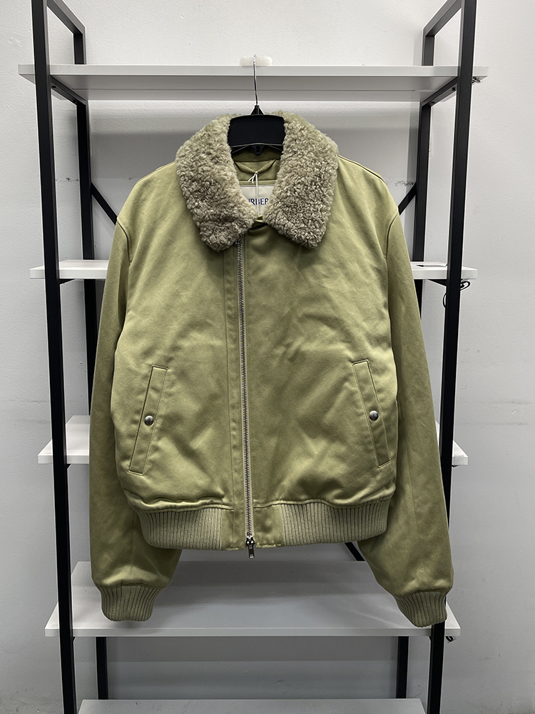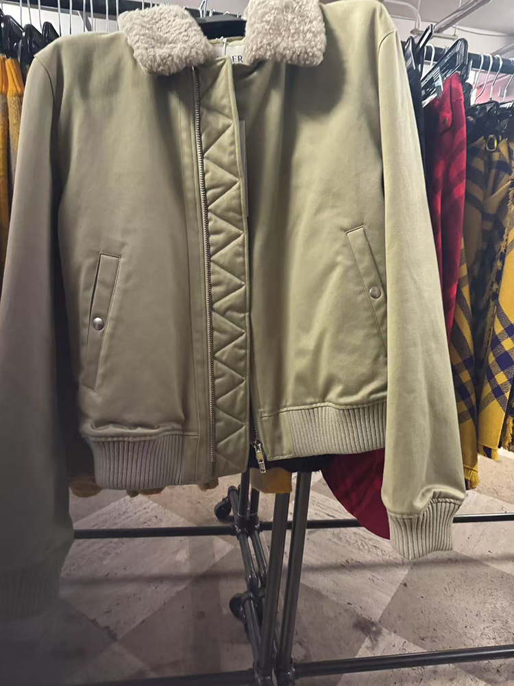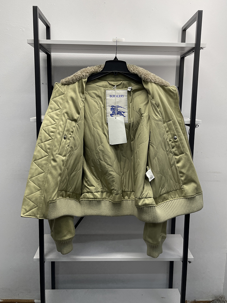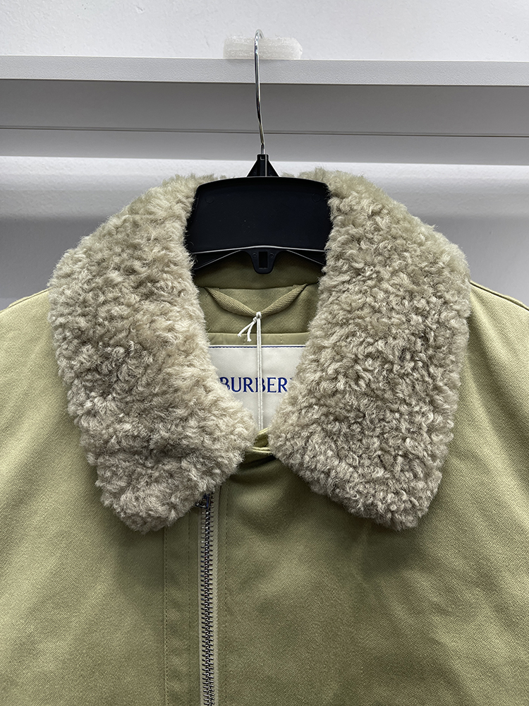 BUR*E**Y/巴*莉 男士休闲棉质全拉链毛羊皮翻领飞行员保暖夹克