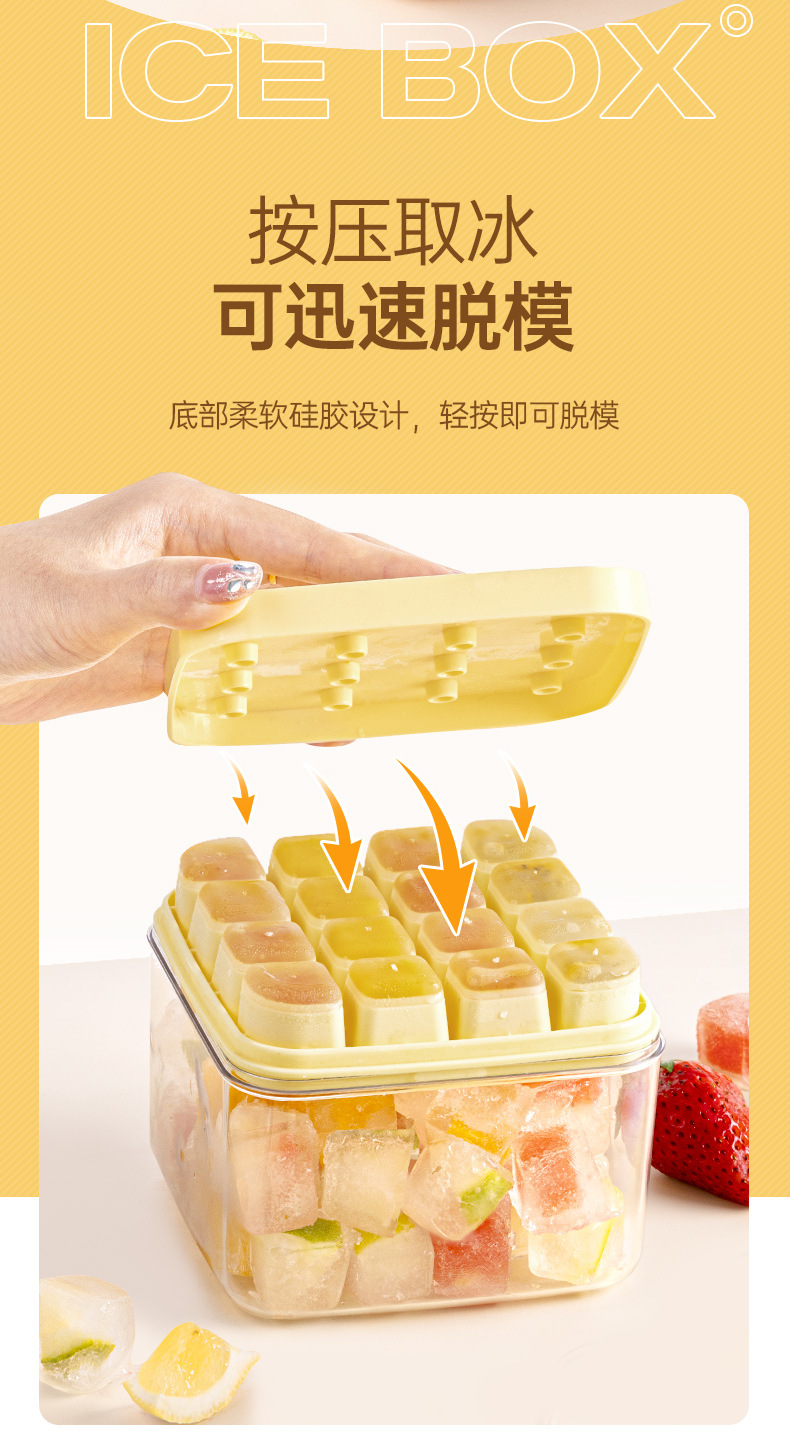 按压冰块模具冰格制冰盒带盖食品级冻冰块模型自制冰箱冻冰块神器