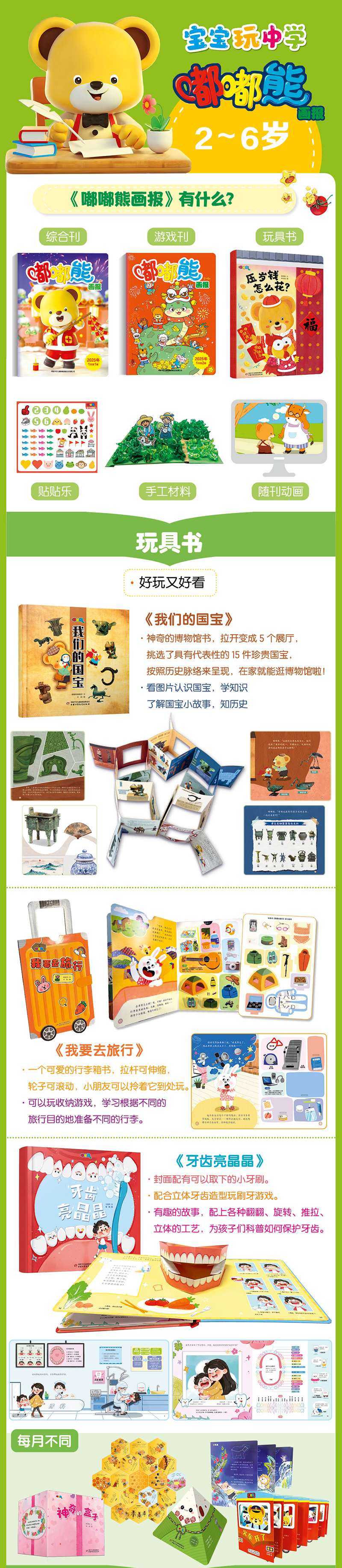 【月刊零售】嘟嘟熊画报 周期:2025年1-12月刊 每月3期 丨随刊赠送贴贴乐、手工材料2-6岁适读