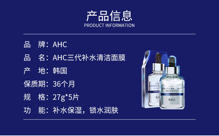 【2盒领券到手价73元】韩国 AHC 第三代玻尿酸面膜 5片/盒 包装随机 保税包邮直发