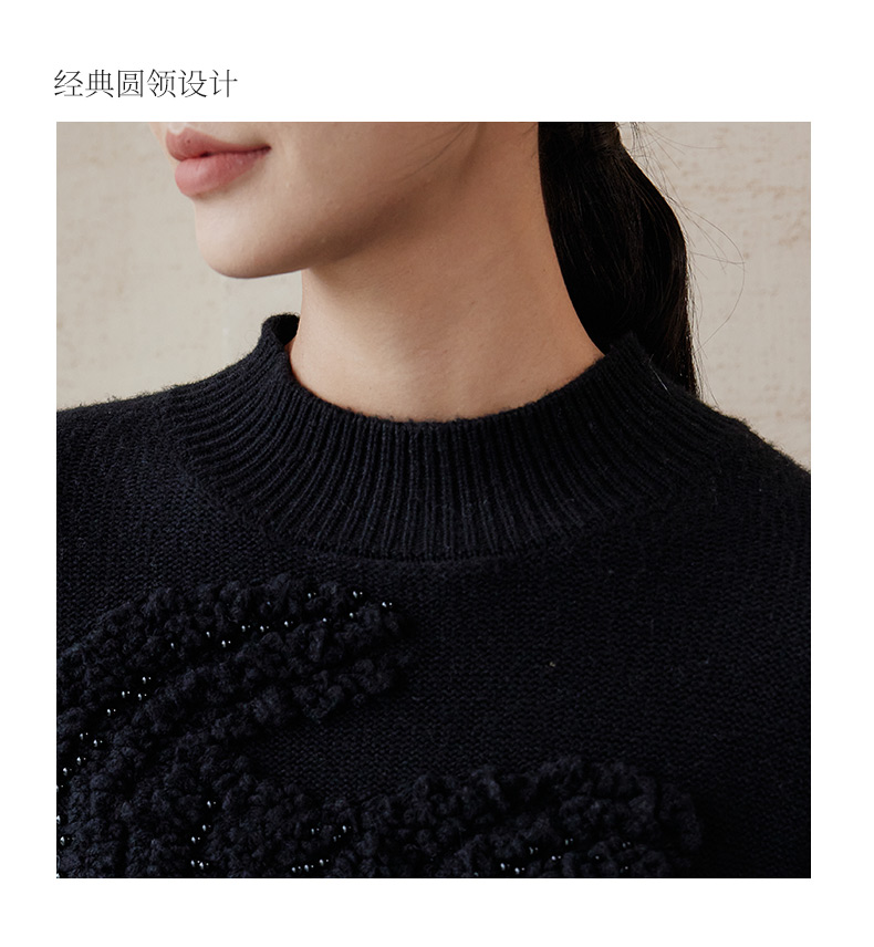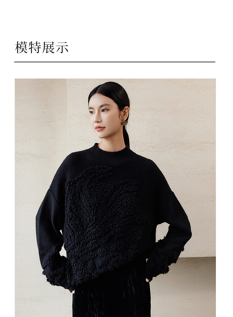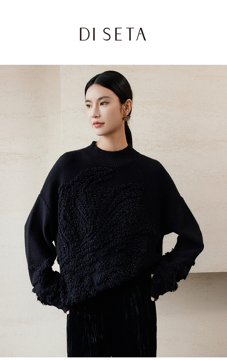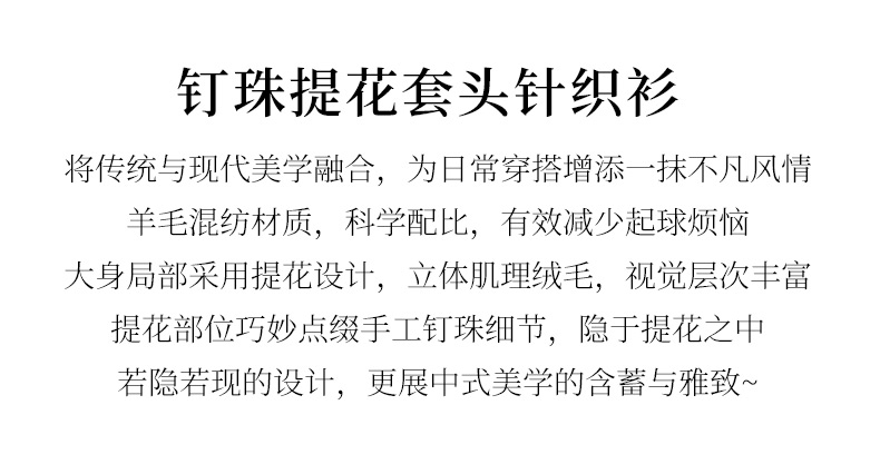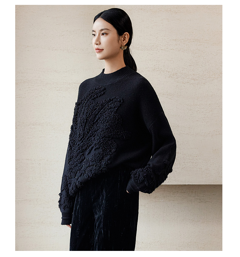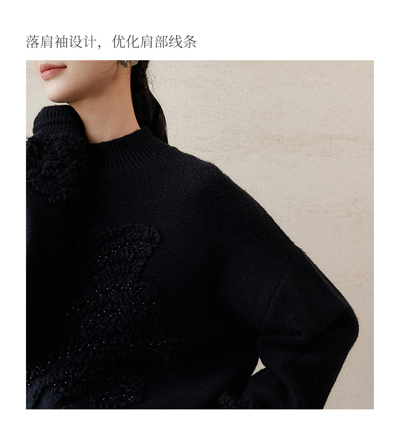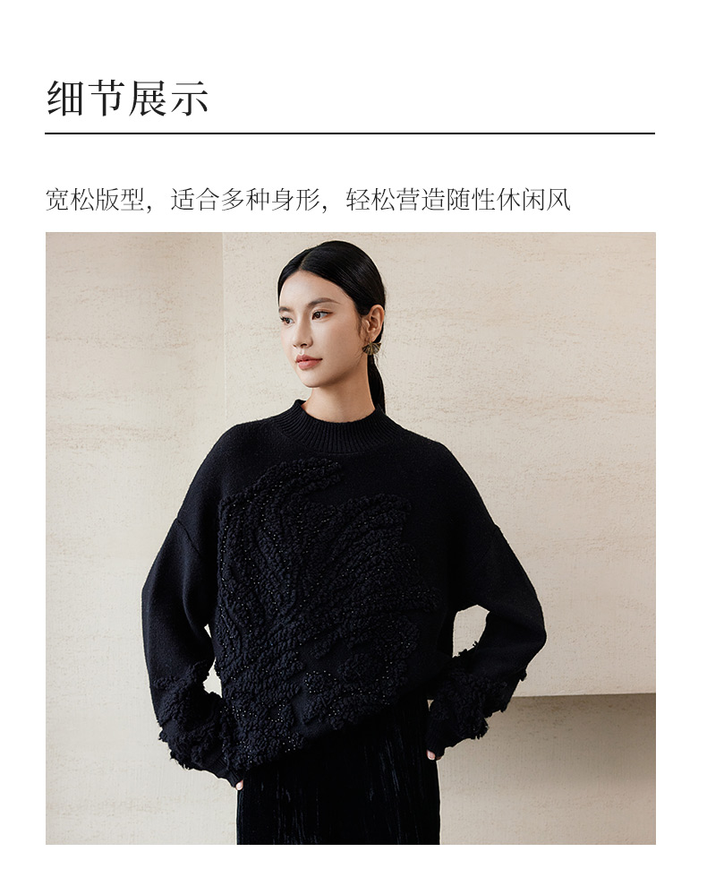 玳莎中式提花钉珠针织衫女2024年冬季新款宽松慵懒落肩袖圆领毛衣 ED33305
