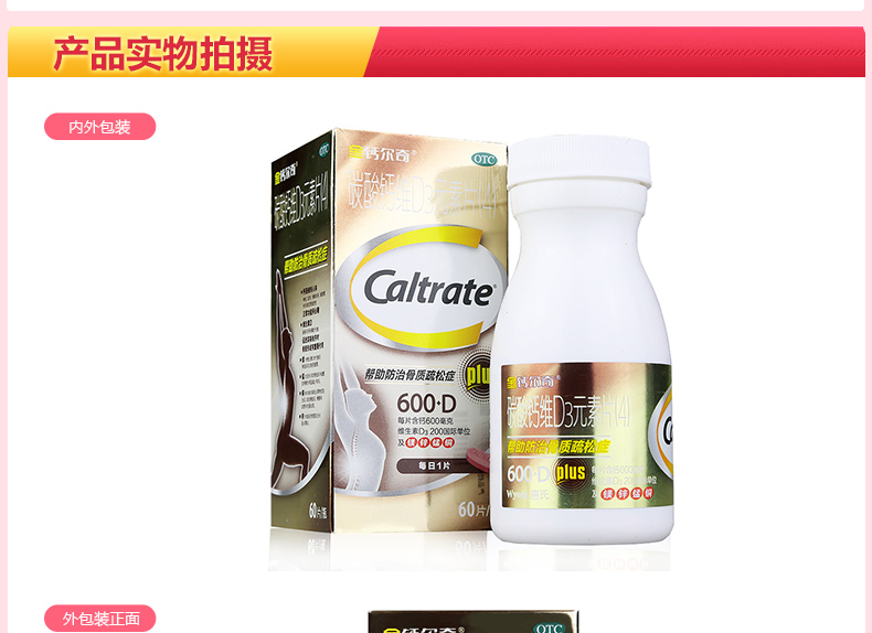 金钙尔奇碳酸钙维D3元素片(4) 60片成人中老年骨质疏松钙片