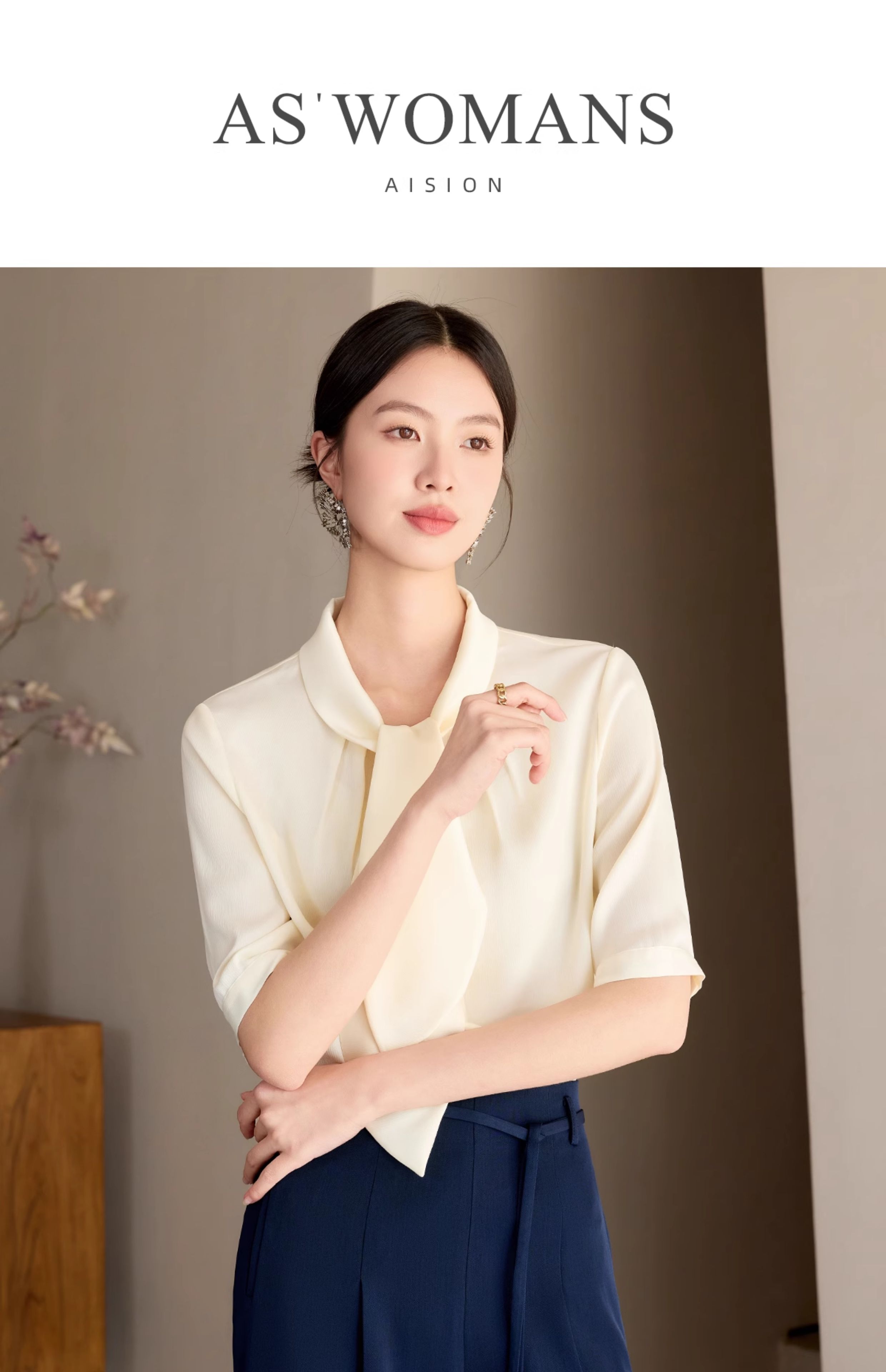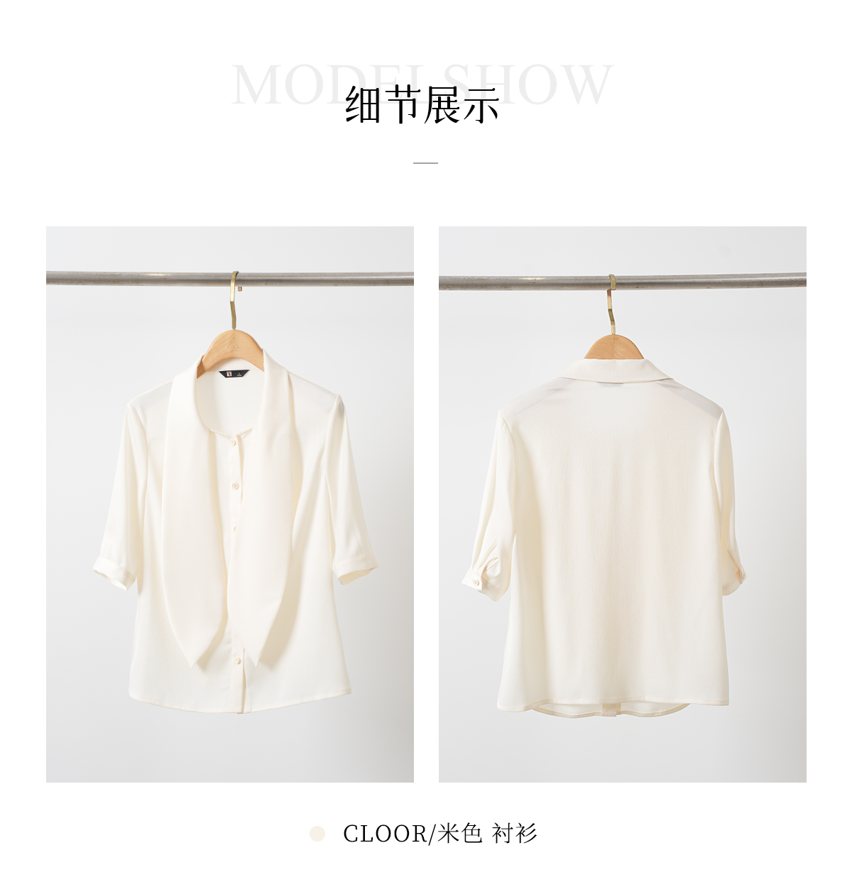 艾尚臣高级感雪纺衬衫女夏季短袖衬衣通勤百搭夏季小香风杏色上衣