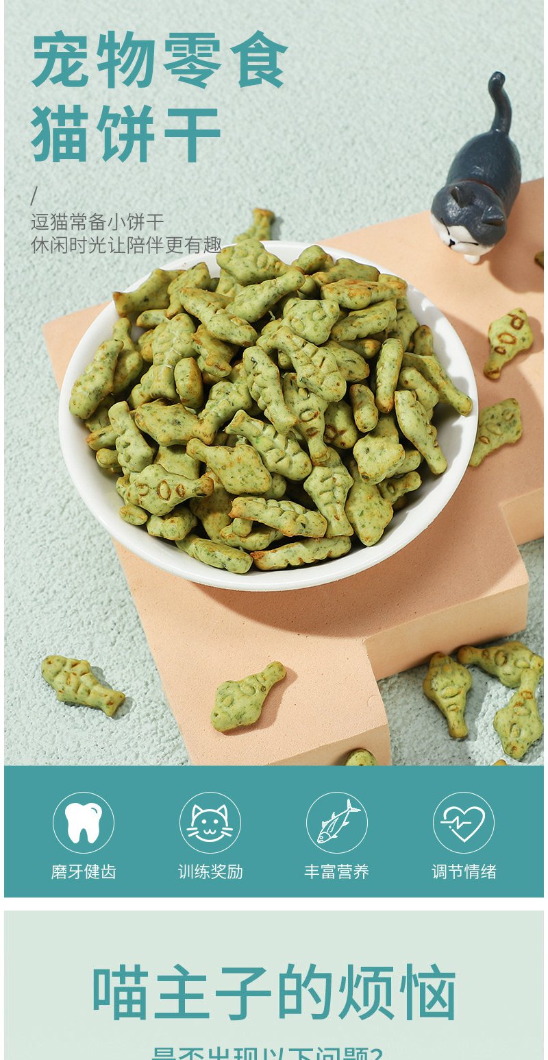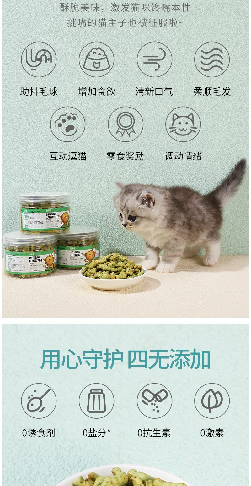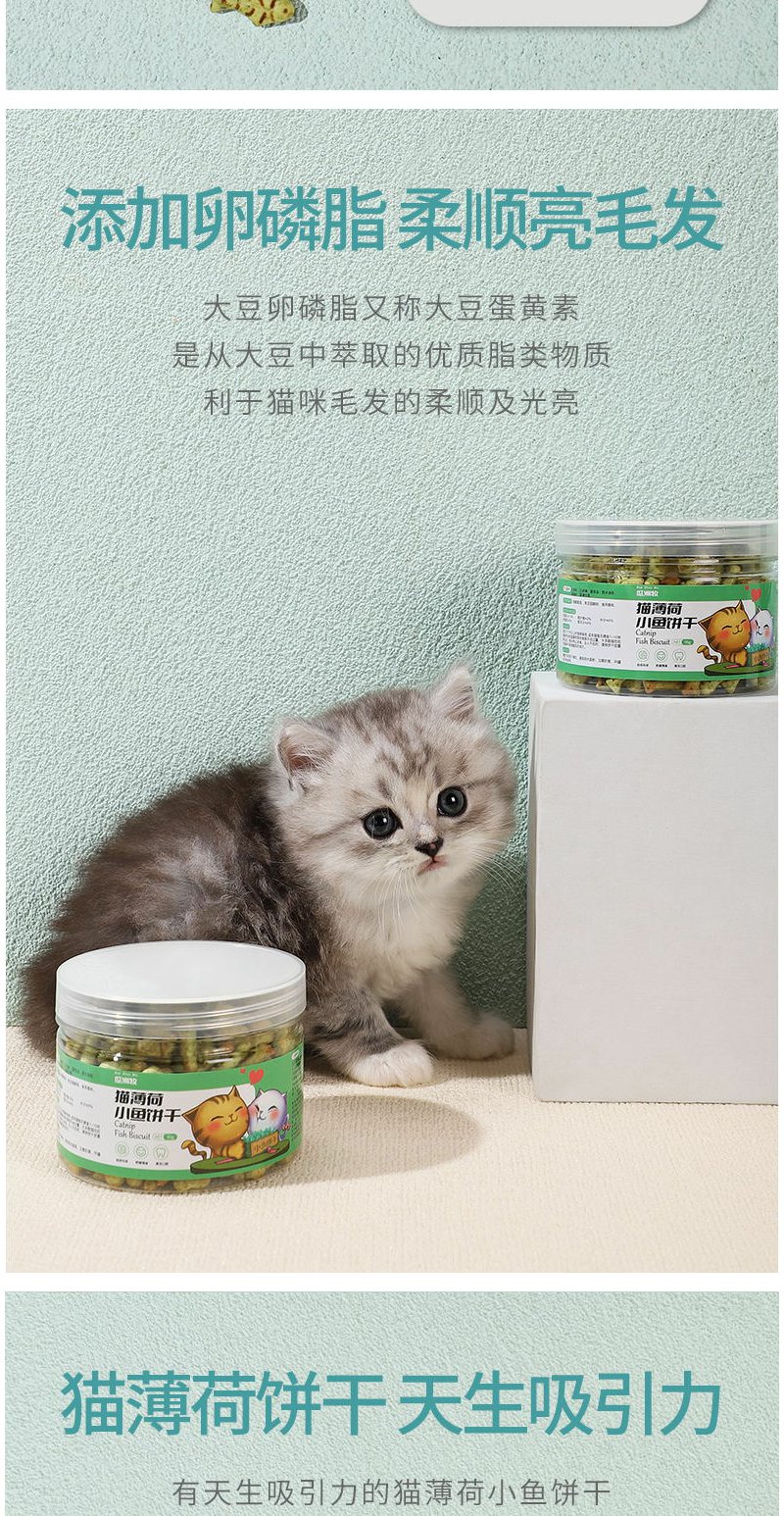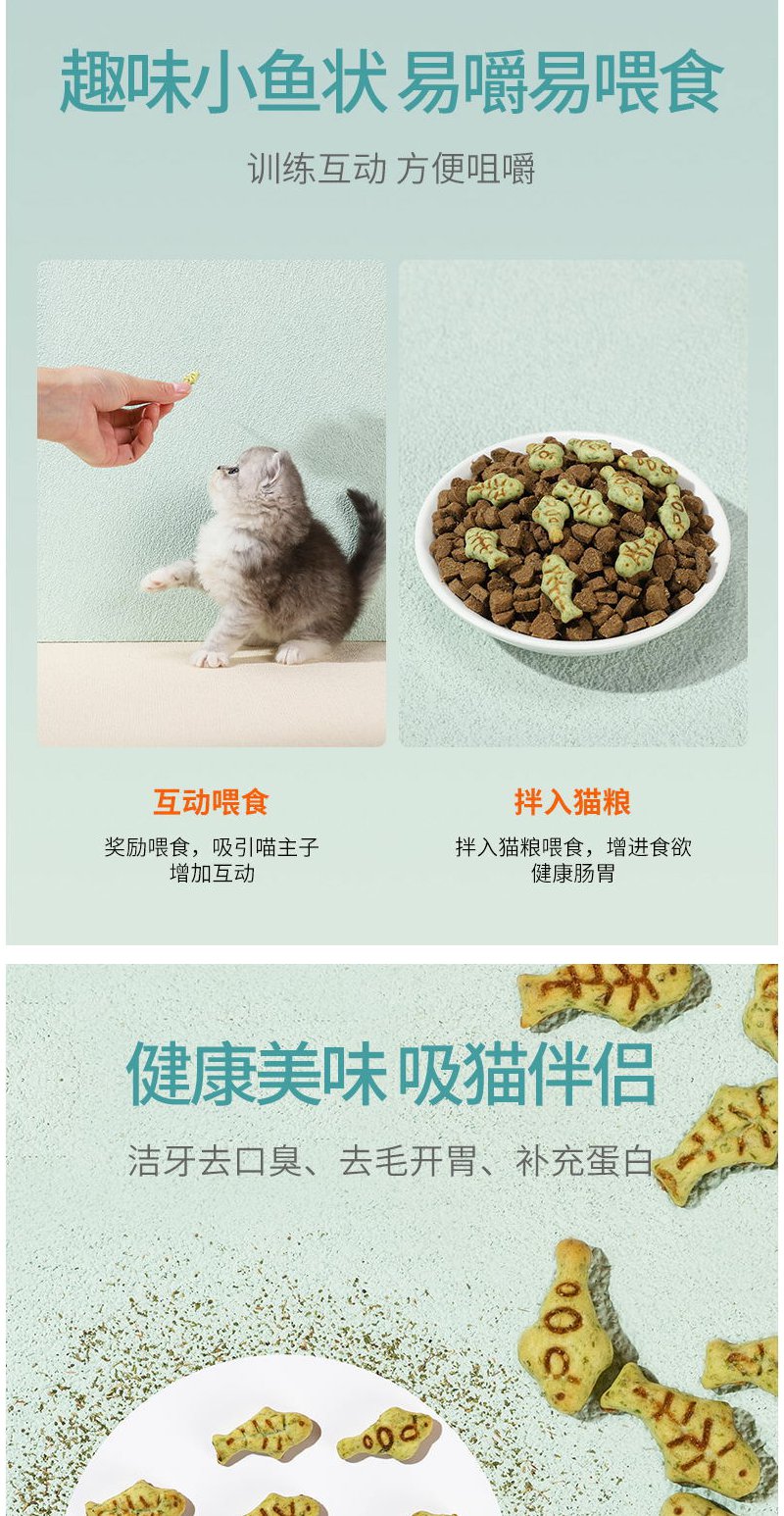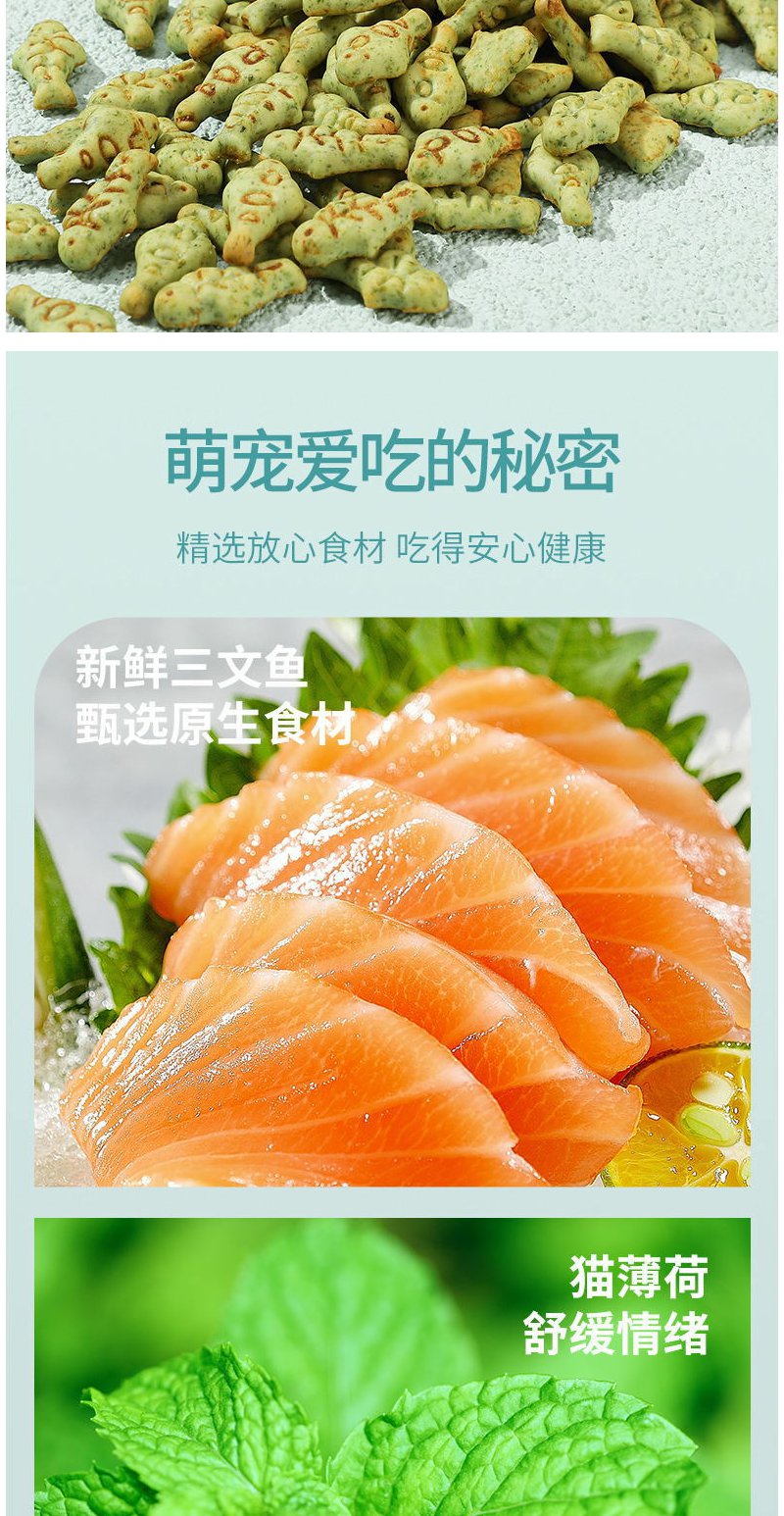 瓜洲牧猫咪零食猫薄荷味小鱼饼干130克幼猫猫草猫草粒洁齿磨牙营养增肥猫饼干