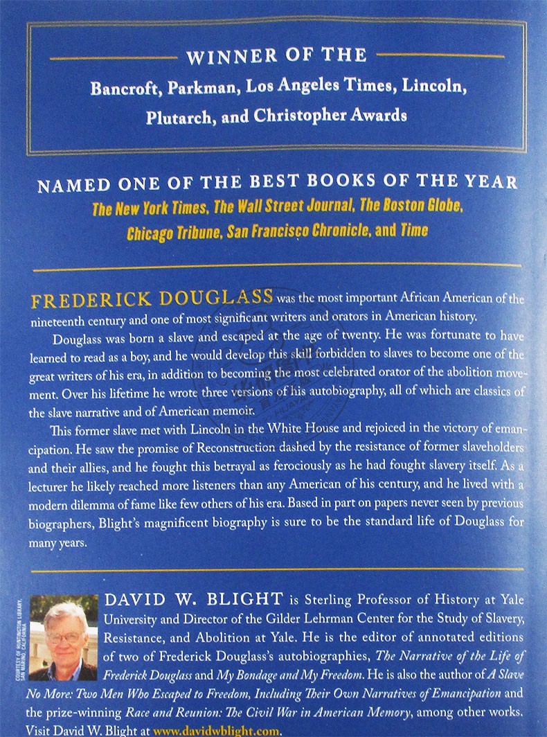 “The first major biography of Douglass in nearly three decades. . . . Blight isn’t looking to overturn our understanding of Douglass, whose courage and achievements were unequivocal, but to complicate it — a measure by which this ambitious and empathetic biography resoundingly succeeds.” -- Jennifer Szalai, The New York Times