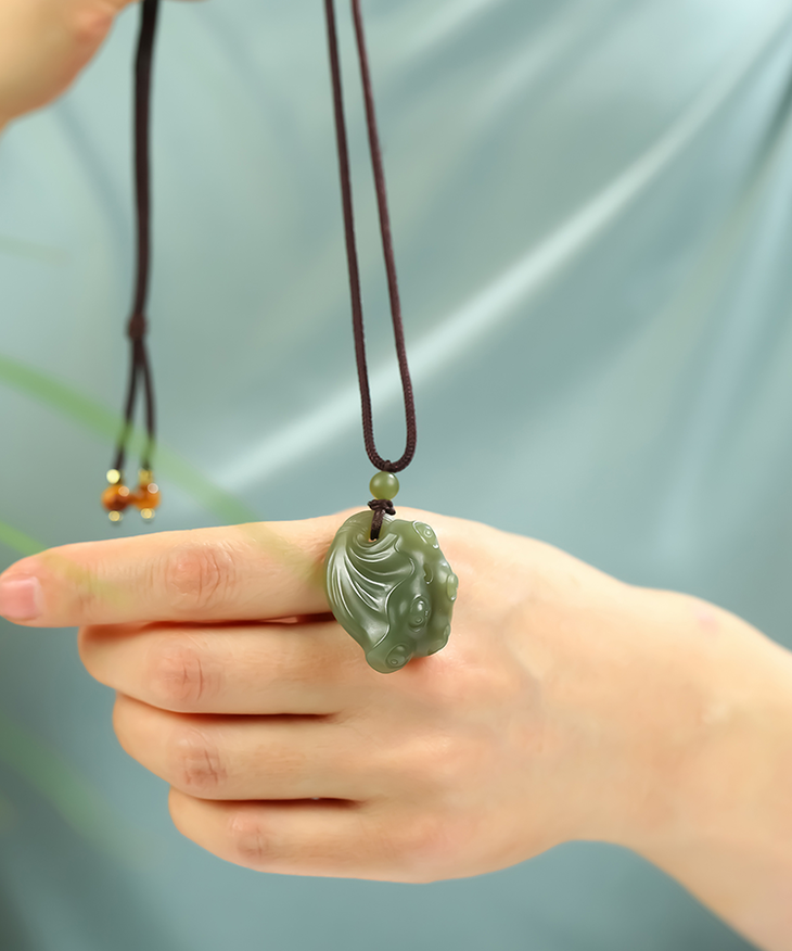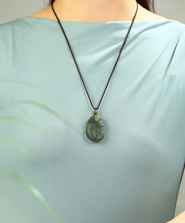线条圆融柔畅,似风拂山脊、月映湖心,玉料原生弧度浑然成趣,轻巧玲珑,可系颈间作贴身吊坠,亦可缀于车钥、包扣,随步履摇曳生辉。