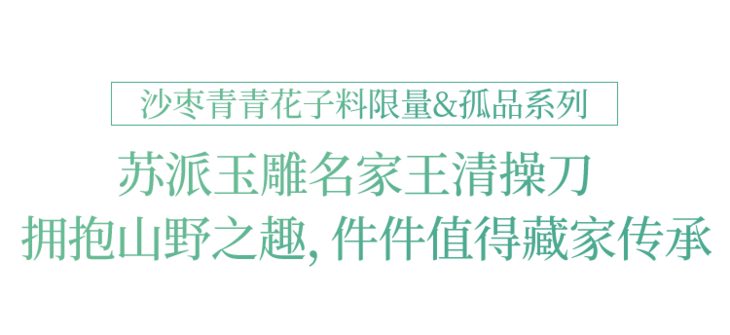 这次沙枣青青花子料玉雕专场,总共带来两款限量挂坠和11款孤品,件件都值得珍藏传承。