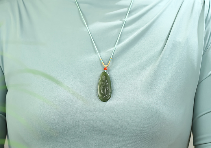 贴身佩戴,似拥一泓清泉涤尘心,墨色渐染岁月痕。观音低眉不语,却如渡千般——