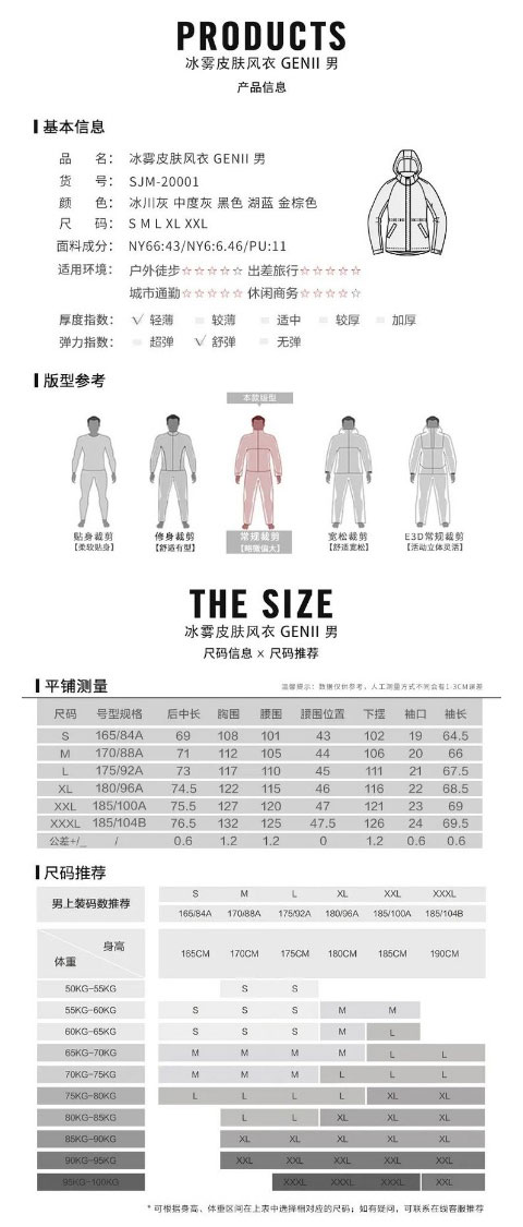 SANFO PLUS 男款冰雾皮肤风衣GENII 21001