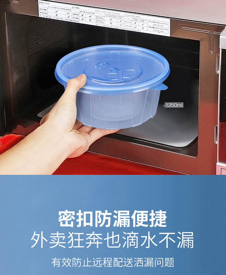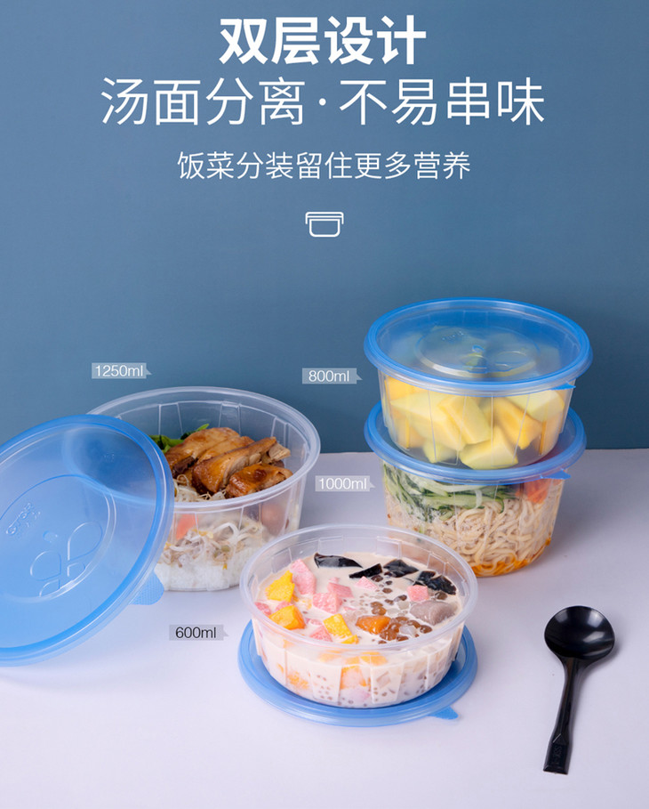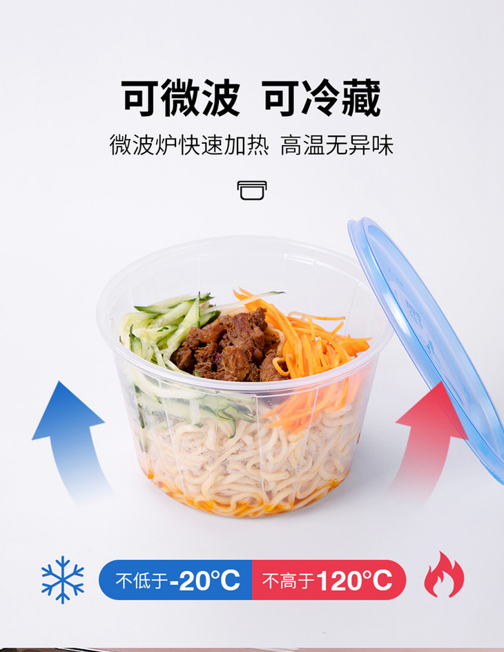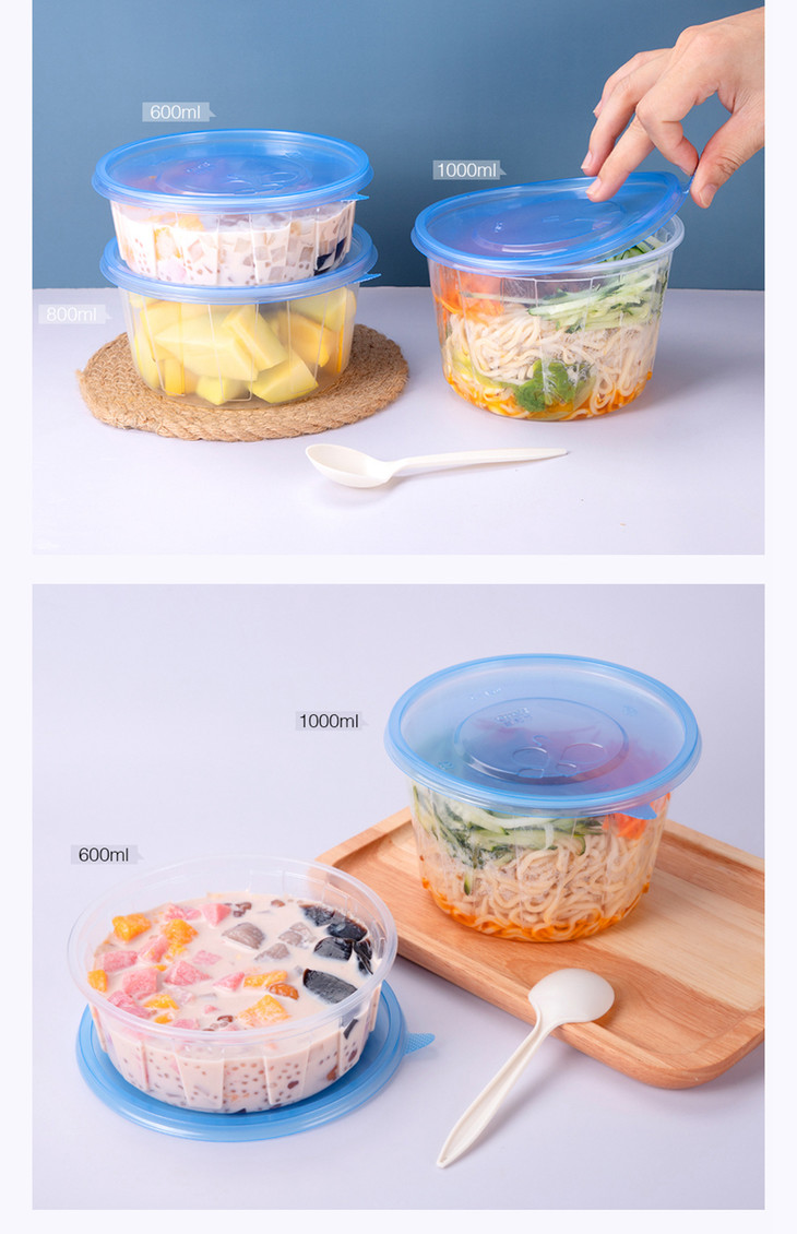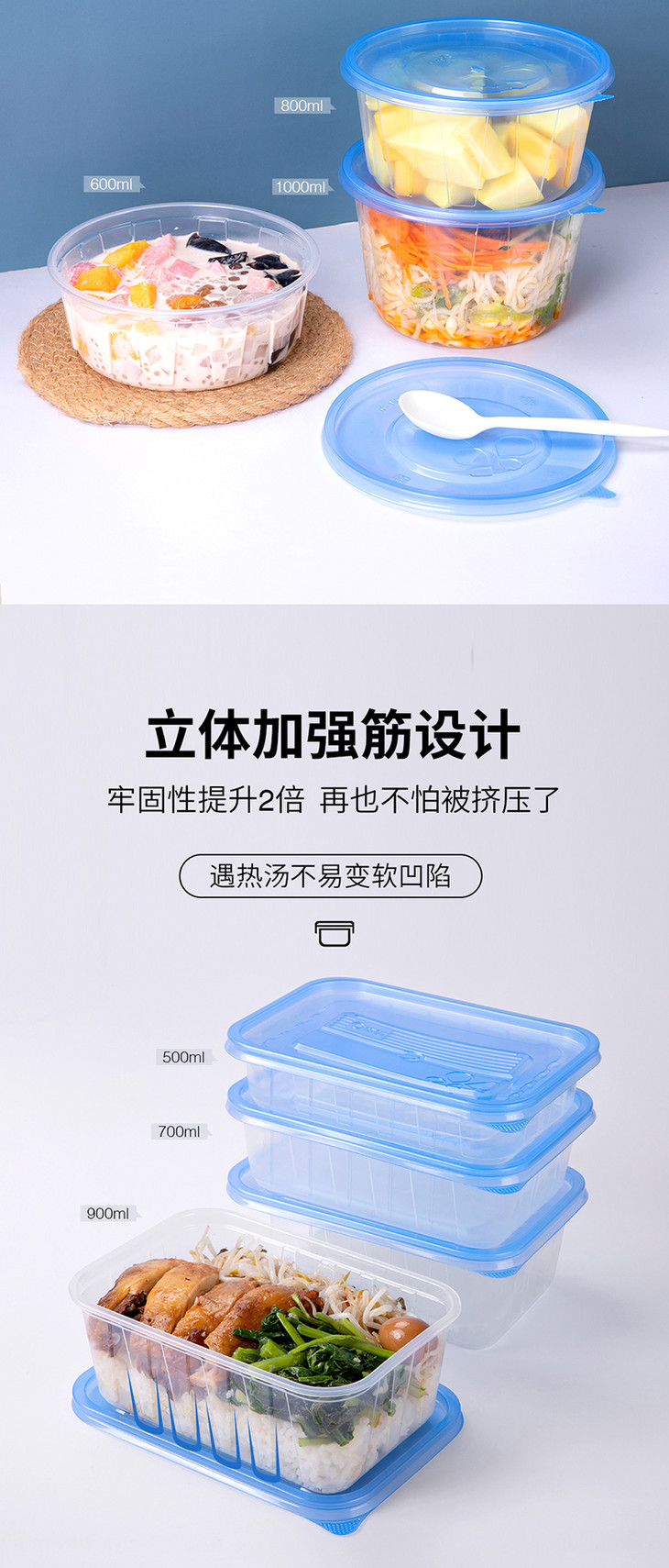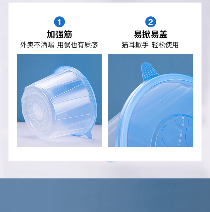 喇叭花一次性圆形汤碗方盒透明外卖打包盒家用面碗饭盒加厚加强筋带蓝盖