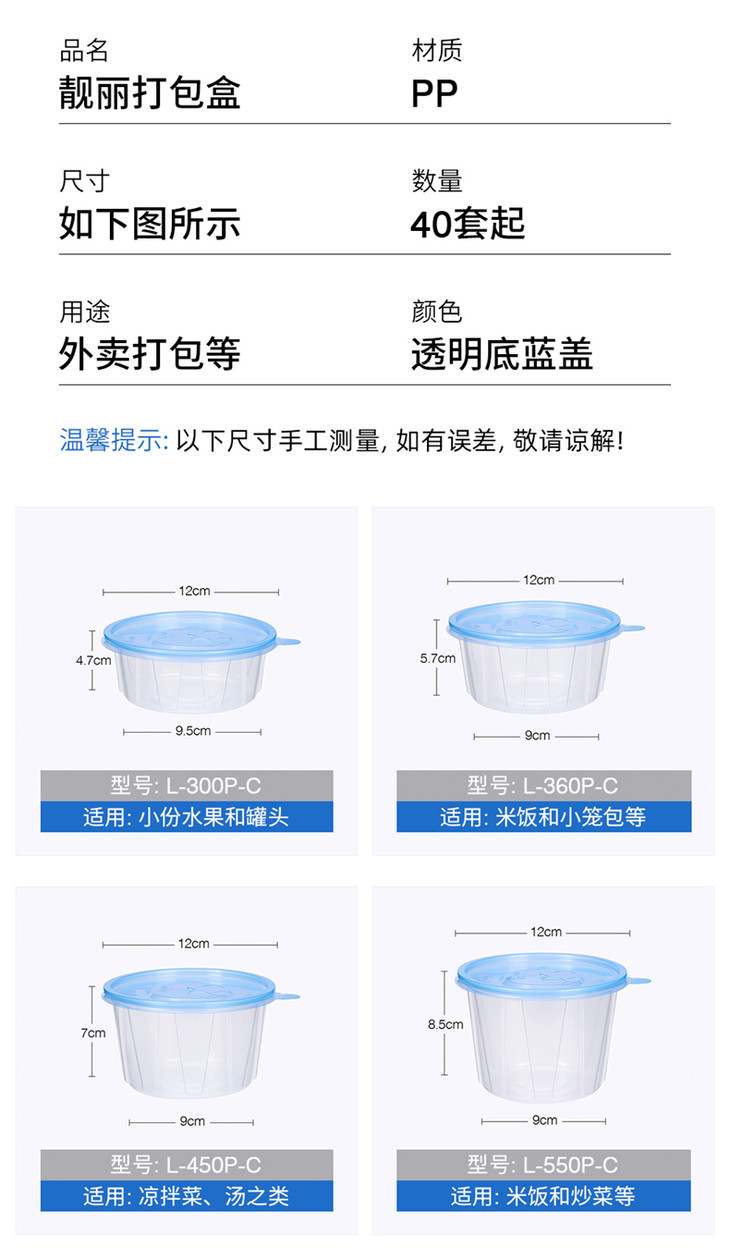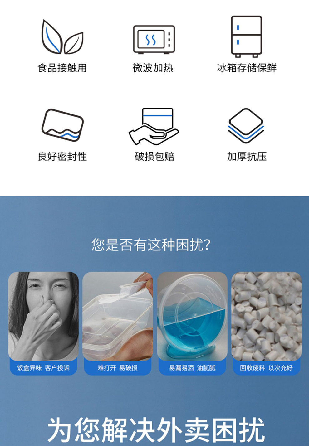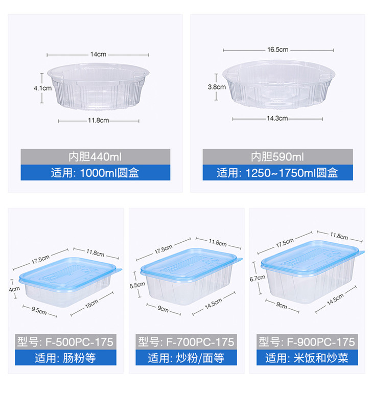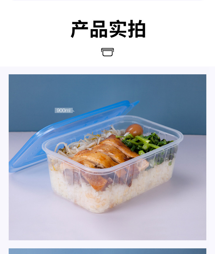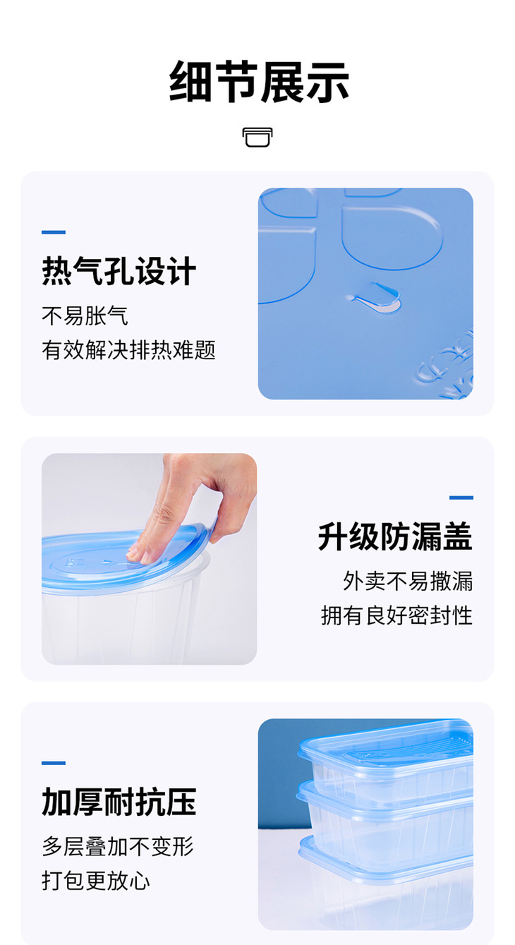 喇叭花一次性圆形汤碗方盒透明外卖打包盒家用面碗饭盒加厚加强筋带蓝盖