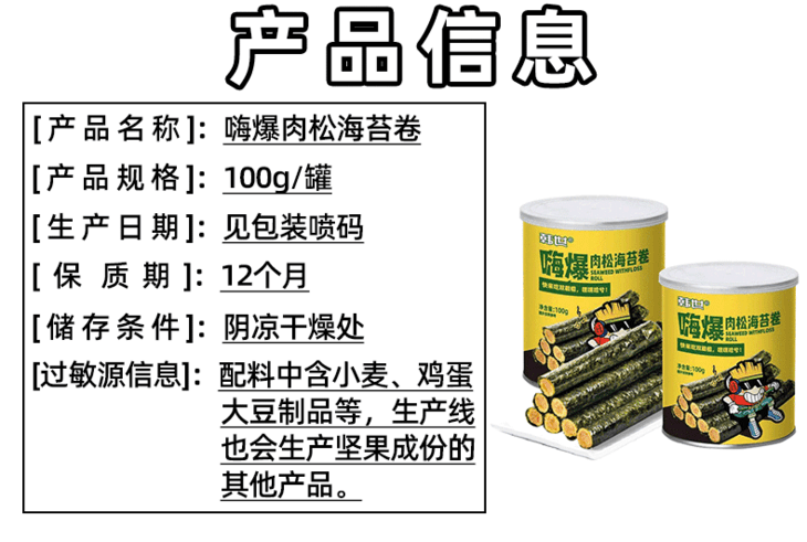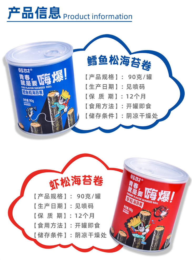 韩世嗨爆海苔肉松卷90g