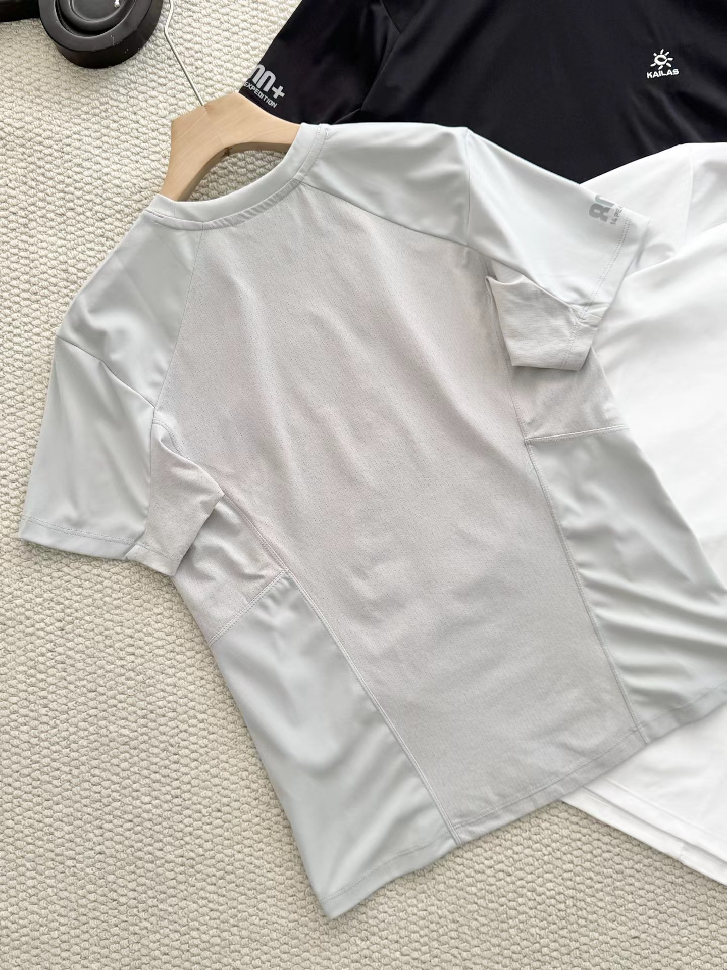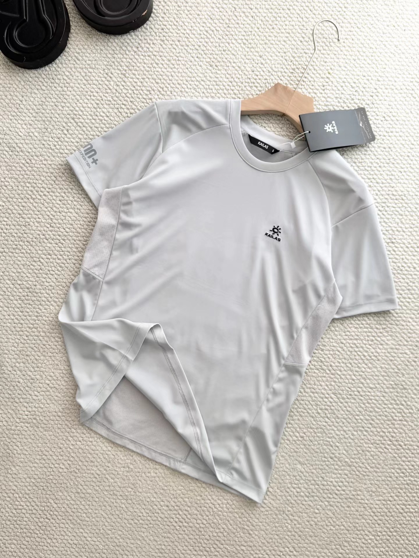 采用插肩袖设计,减少肩部活动束缚,无论是户外徒步还是日常抬手都更自由;侧腰与后背拼接透气网布,视觉上更具层次感,同时优化了身体活动时的贴合度。胸口小logo低调彰显品牌身份,袖口处的“nn+”标识暗藏户外基因,简约不张扬。后背与侧腰采用网眼透气面料,配合速干科技,能快速导出汗液,保持皮肤干爽,避免闷热黏腻感,高温天气也能舒适应对。主体面料柔软亲肤,自带抗皱属性,日常穿着不易变形,机洗后也能快速恢复平整,打理更省心。