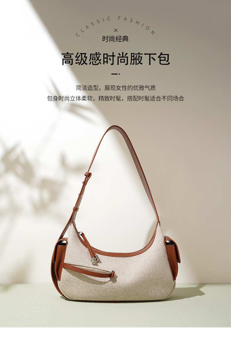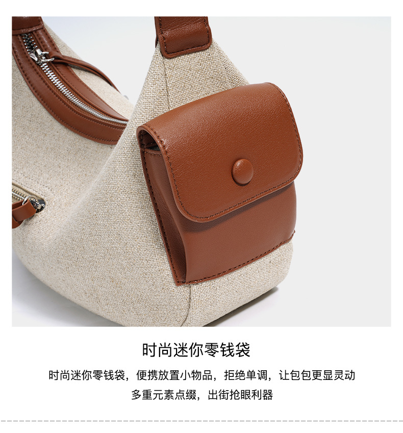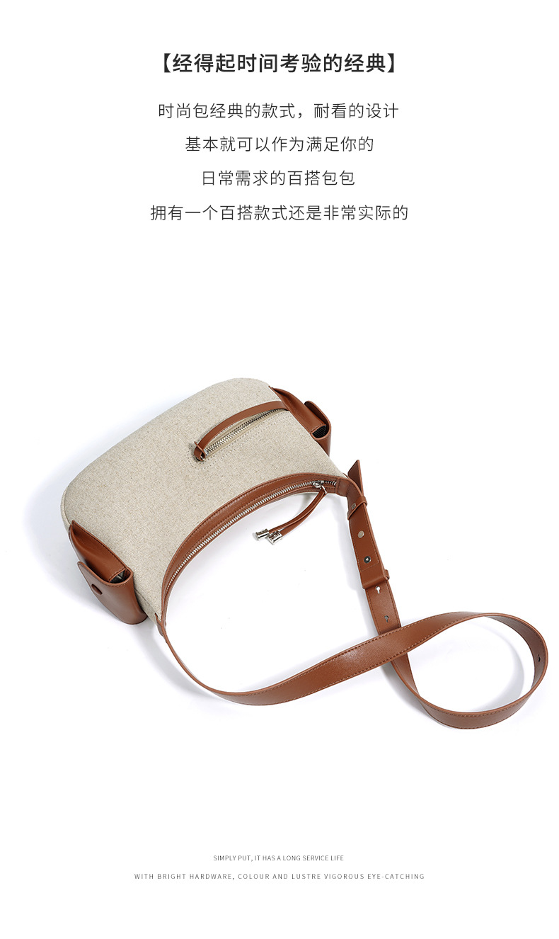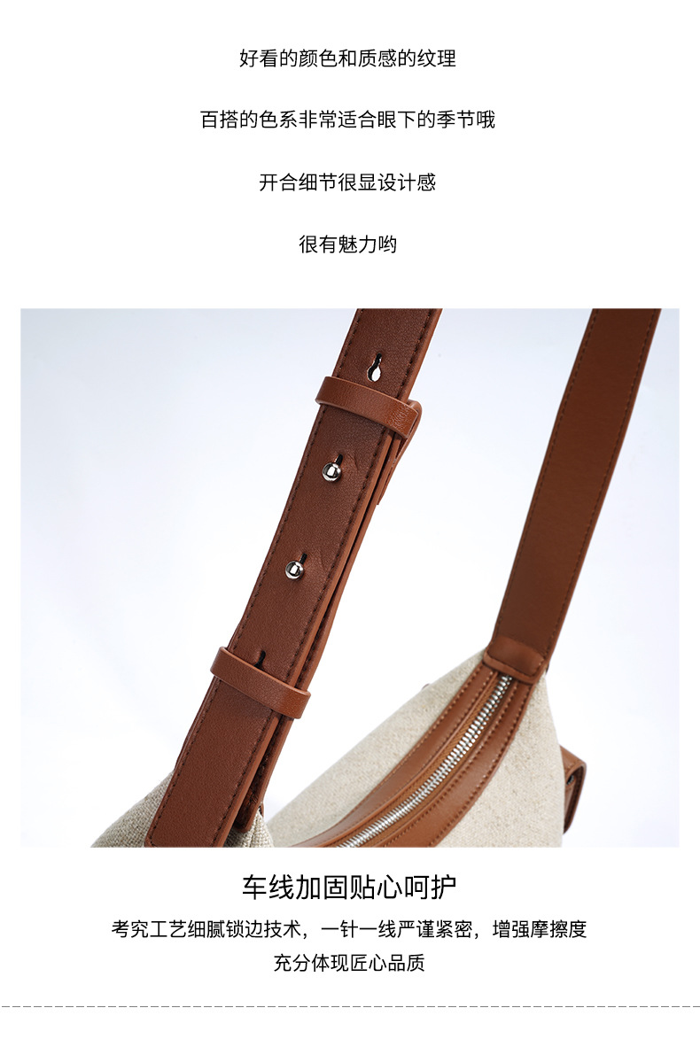 【预售3天】202新款亚麻料单肩包休闲简约斜挎包女小众设计大容量手提包MJ8549