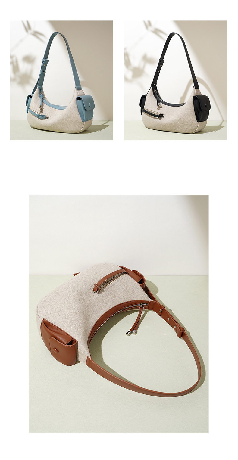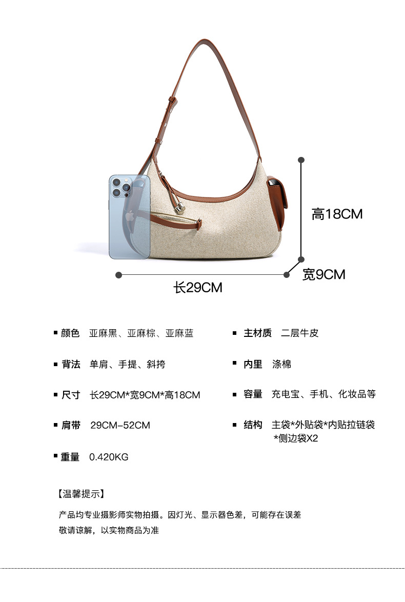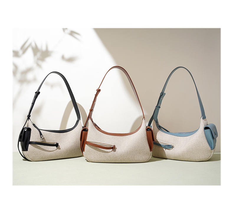 【预售3天】202新款亚麻料单肩包休闲简约斜挎包女小众设计大容量手提包MJ8549