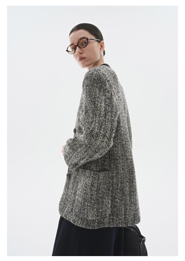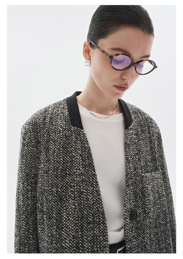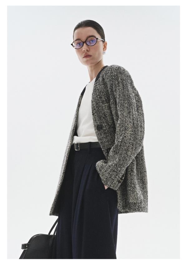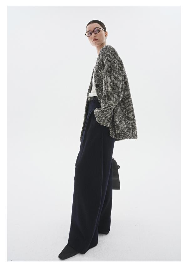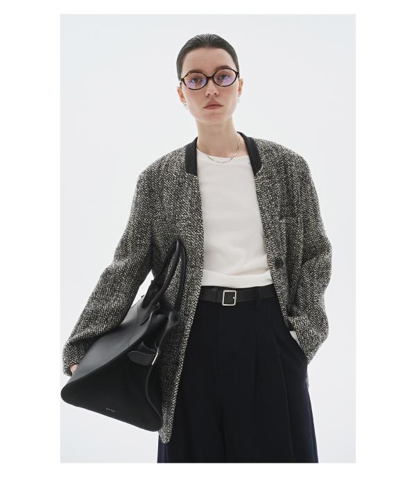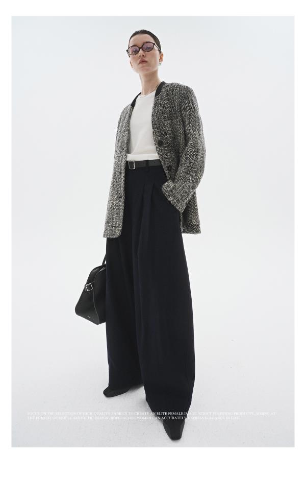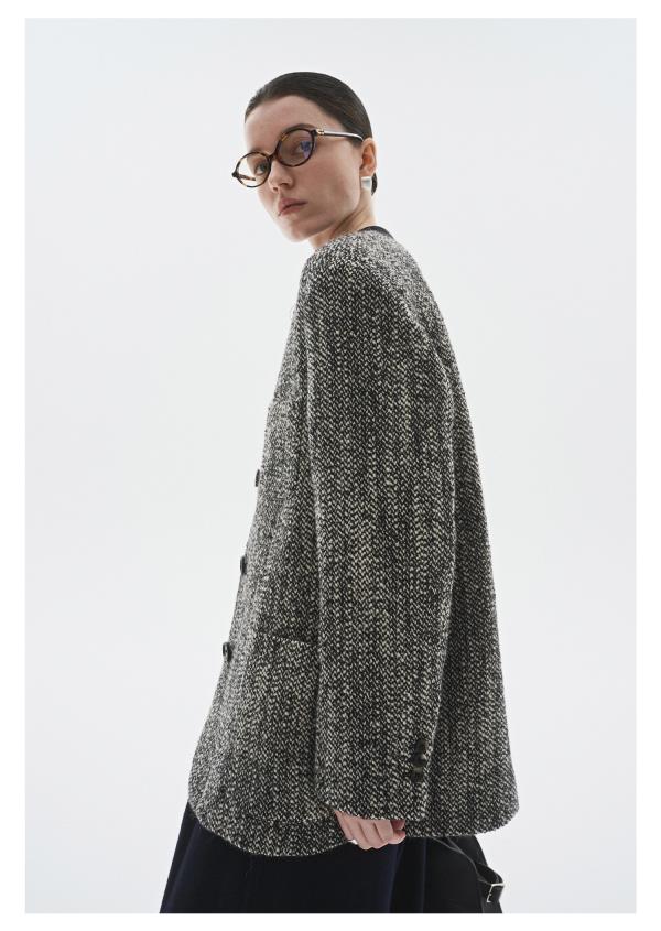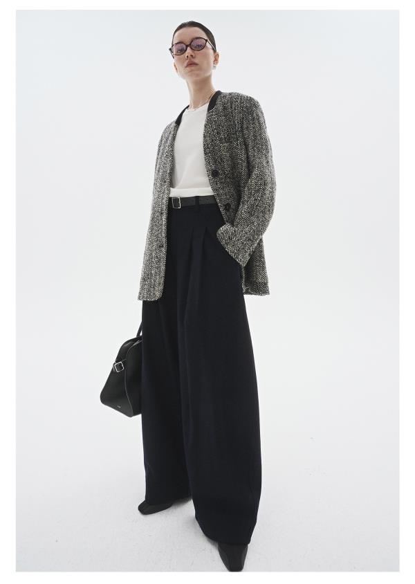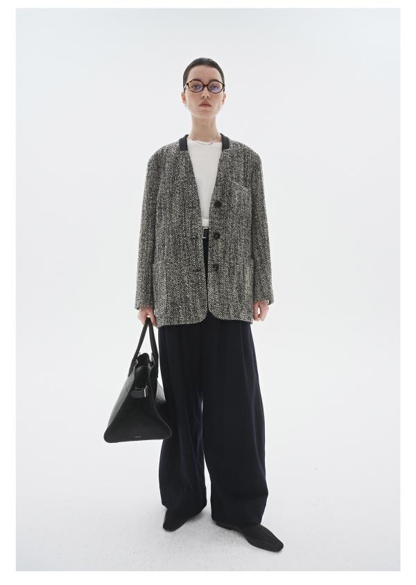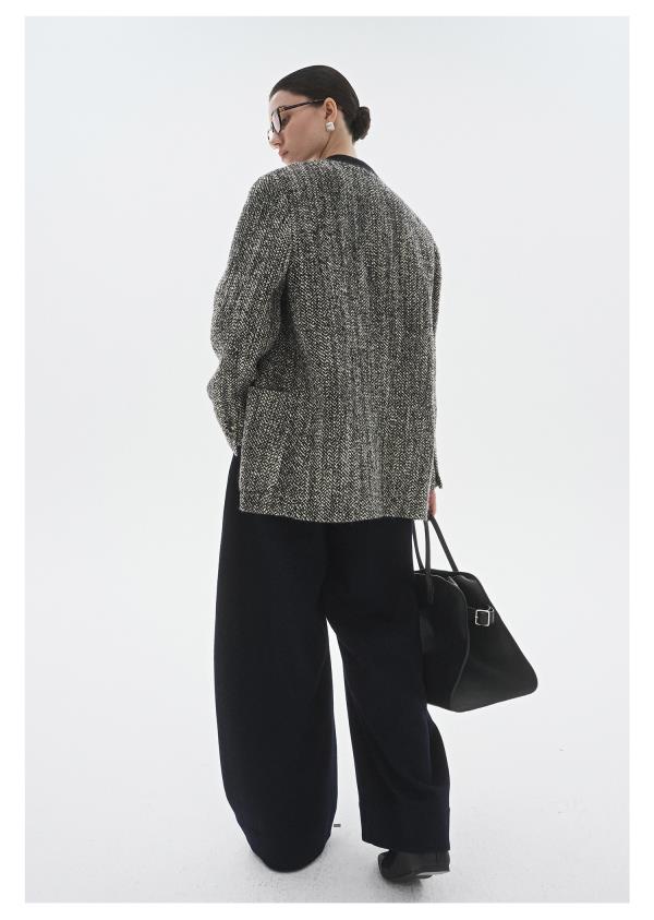 棉仓3561566004-【发财】拼接西装毛呢外套