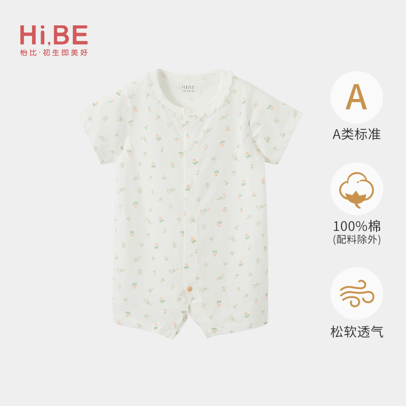 怡比繁花拾光短袖开襟哈衣HY26SUN050粉橘色调59#-80#