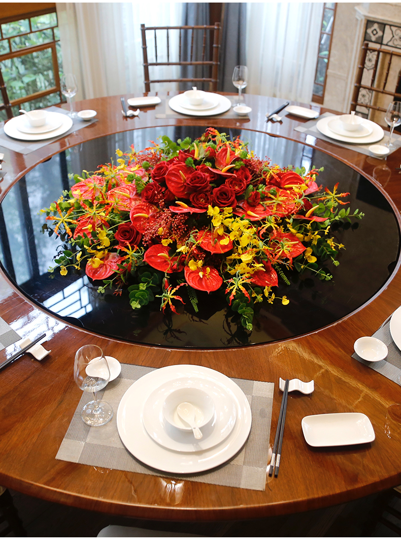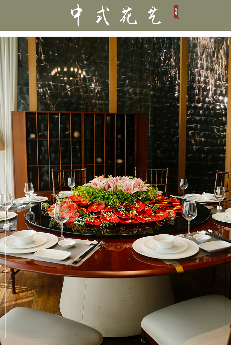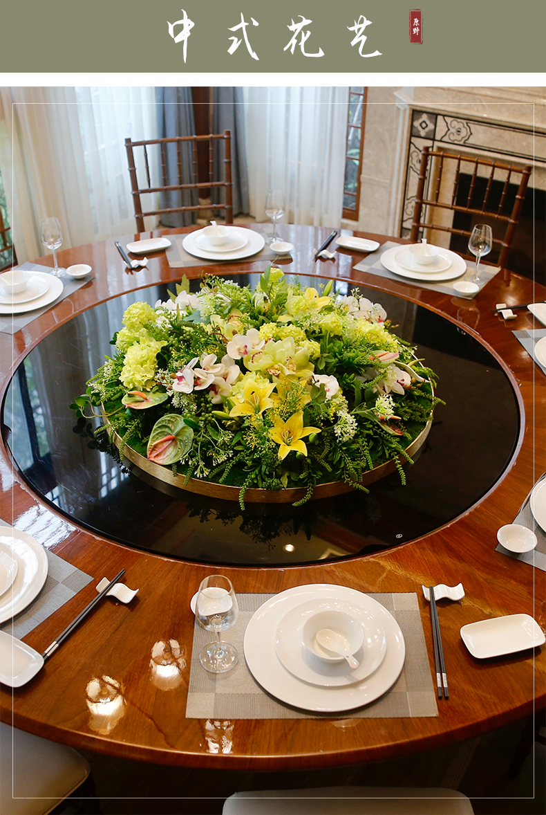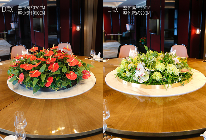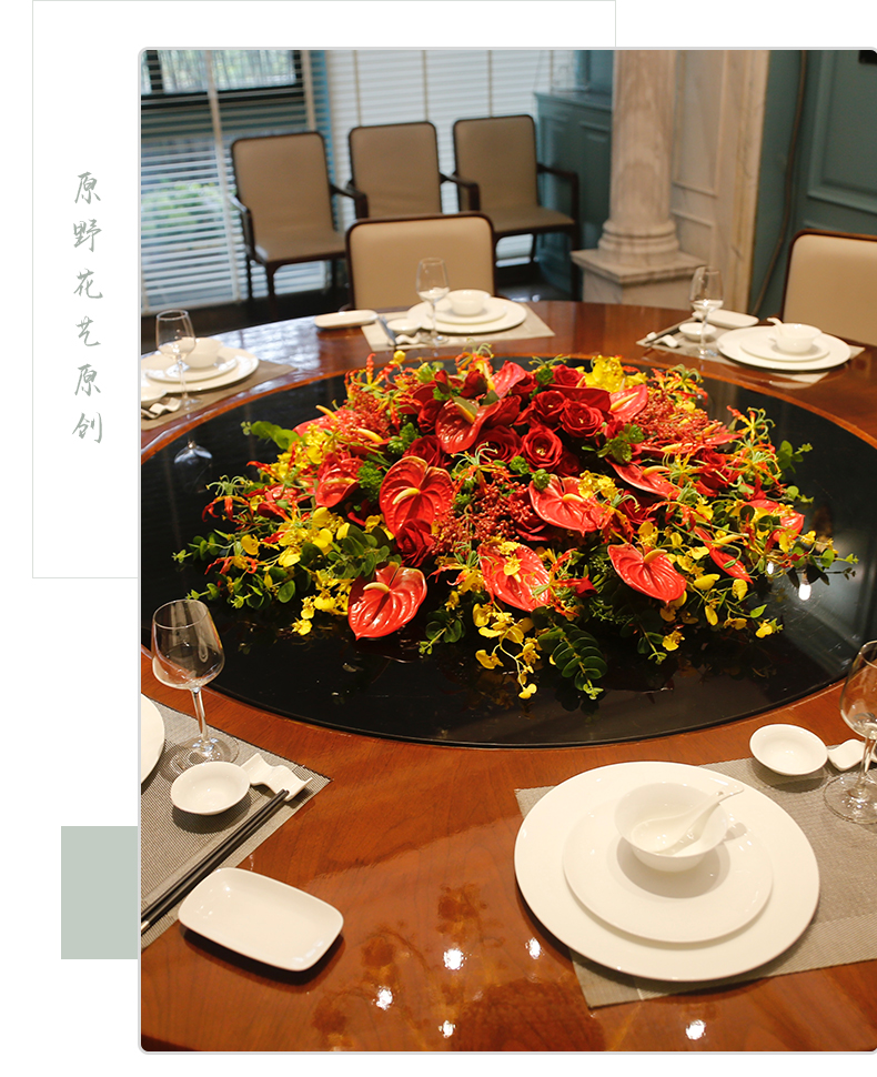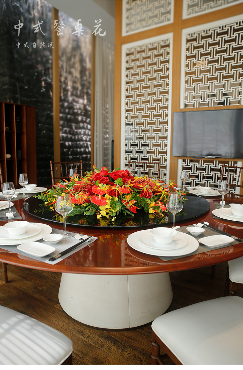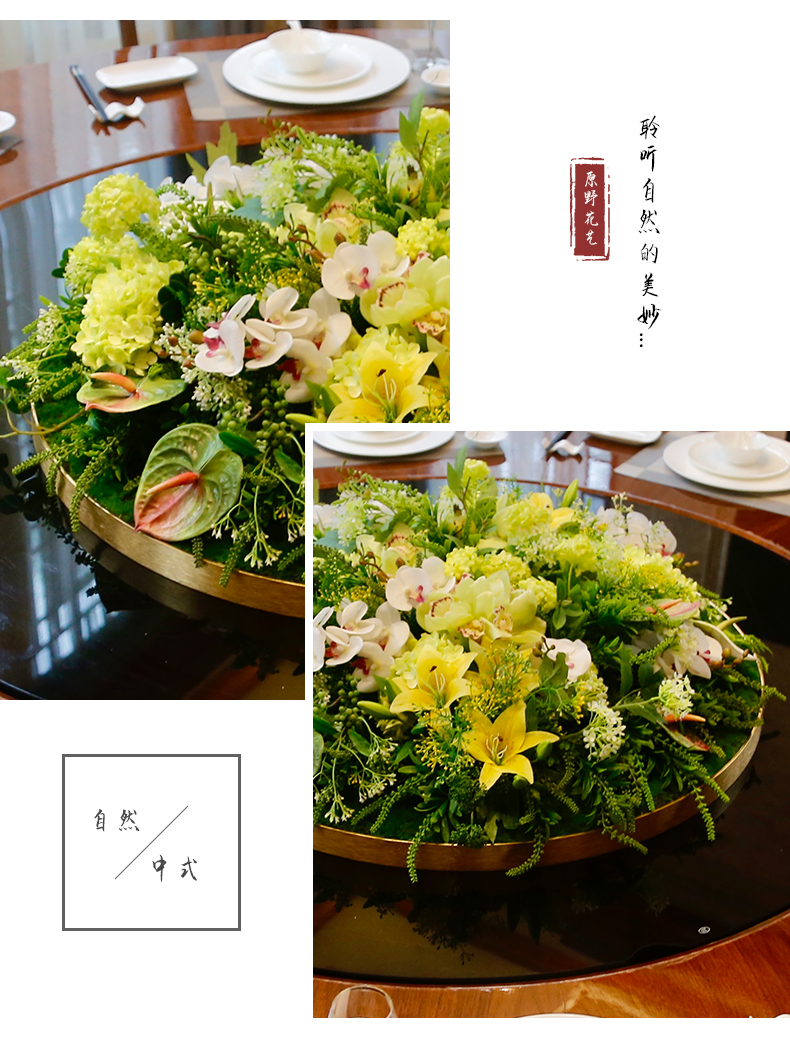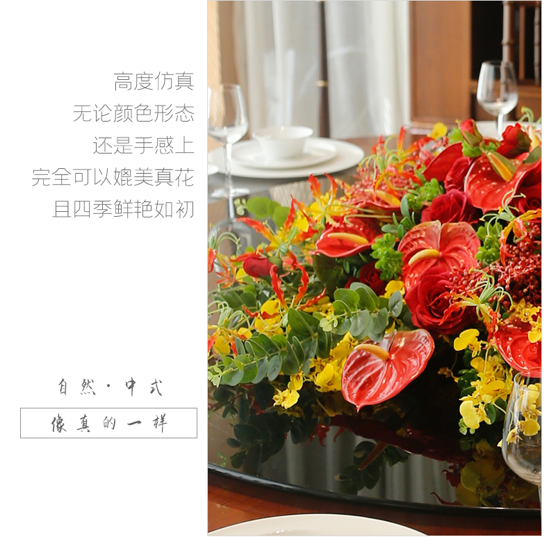 酒店餐桌花仿真花圆桌转盘桌面餐厅包厢新中式欧式轻奢摆设件