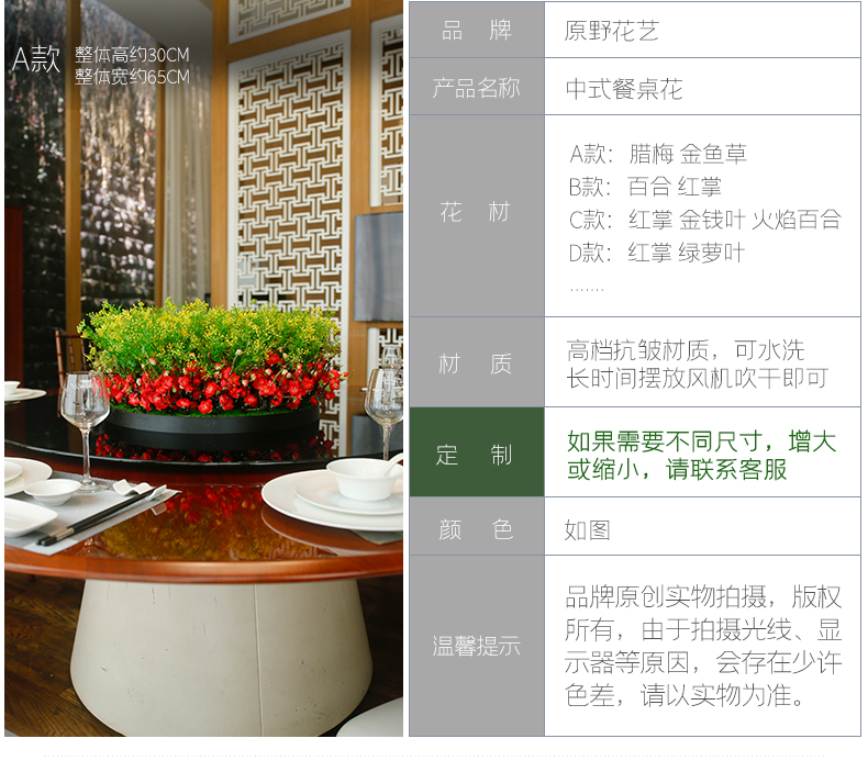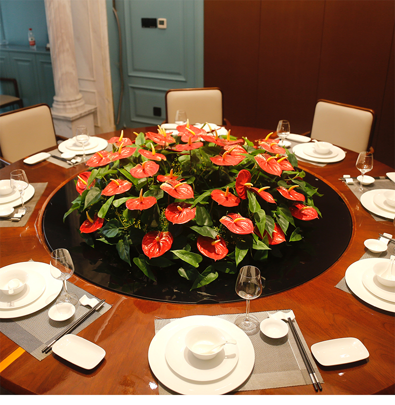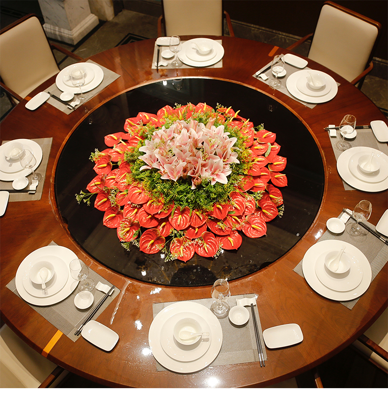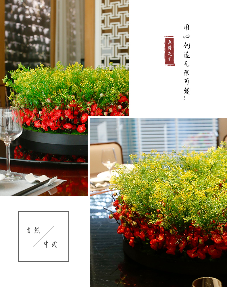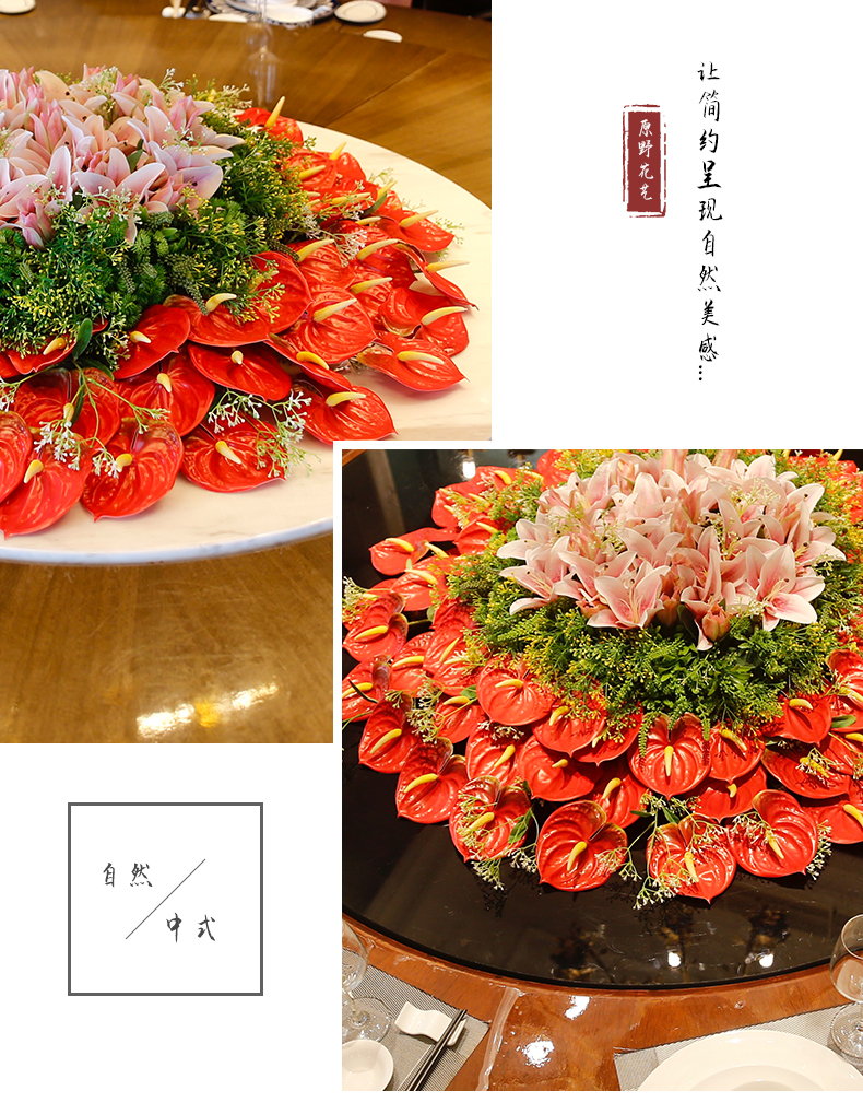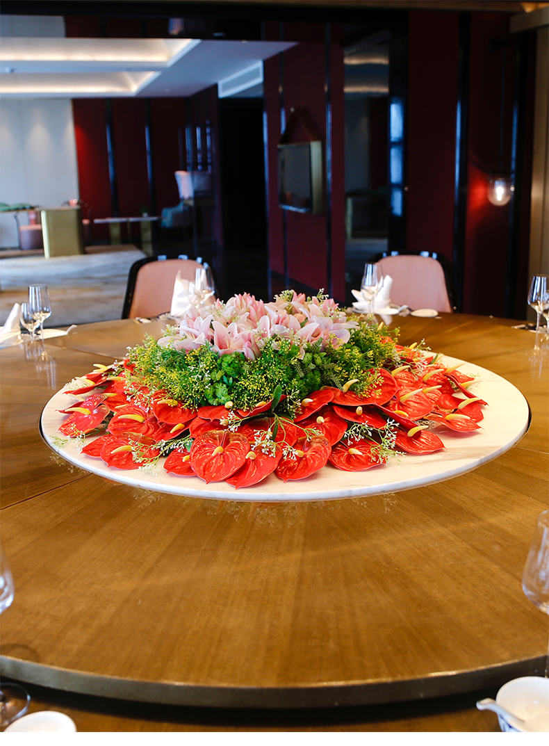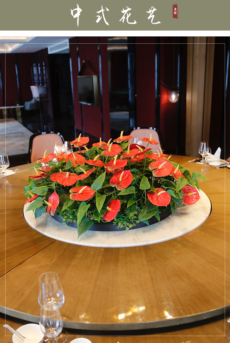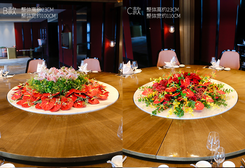 酒店餐桌花仿真花圆桌转盘桌面餐厅包厢新中式欧式轻奢摆设件