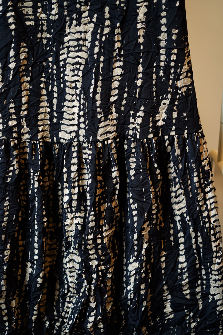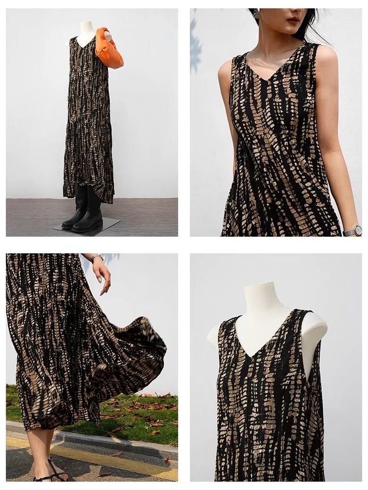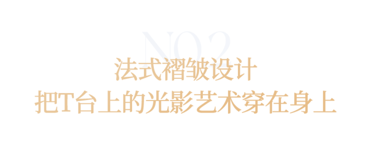 褶皱自然有肌理,高温压褶再做定型,使得裙身更有弹性,垂感更好。