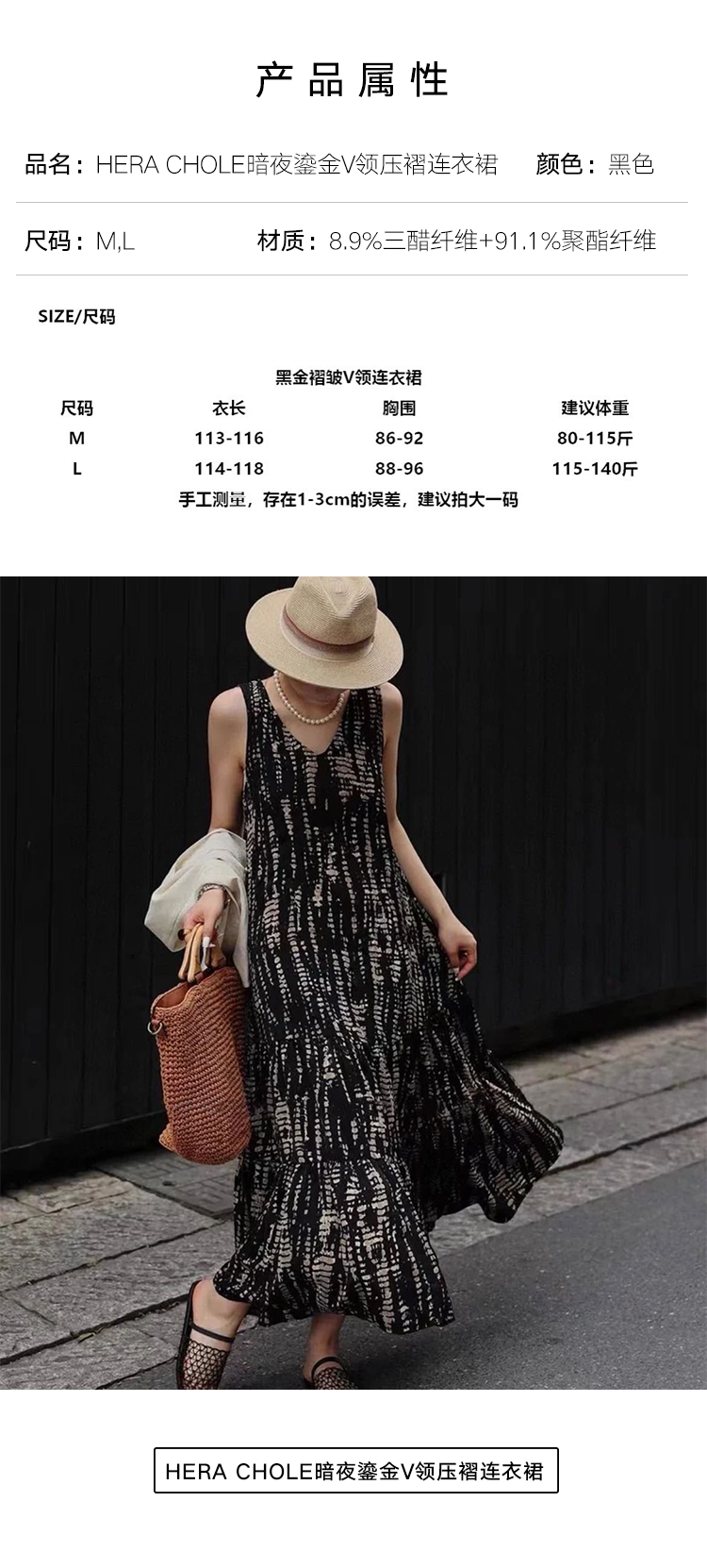 掌柜安利你这件【HERA CHOLE暗夜鎏金V领压褶连衣裙】