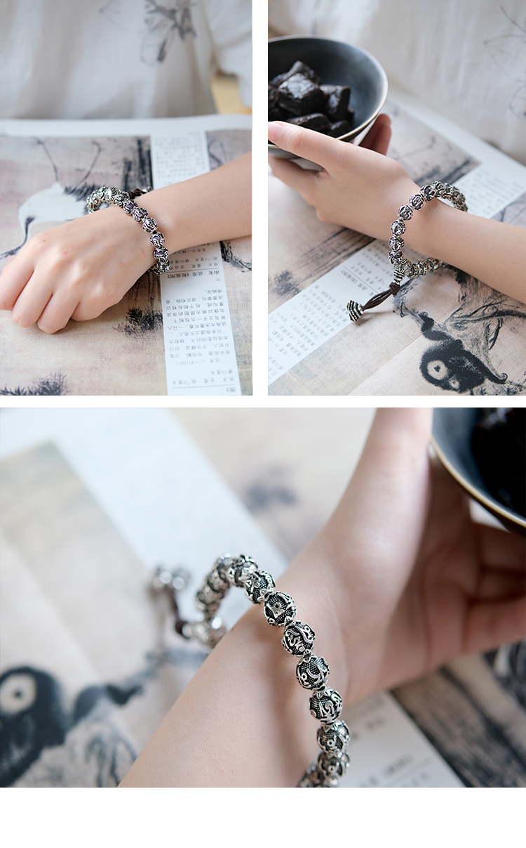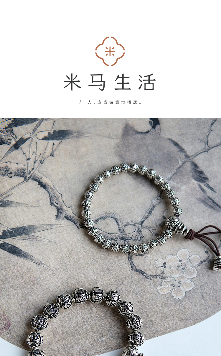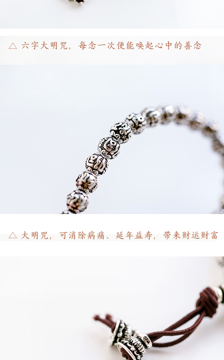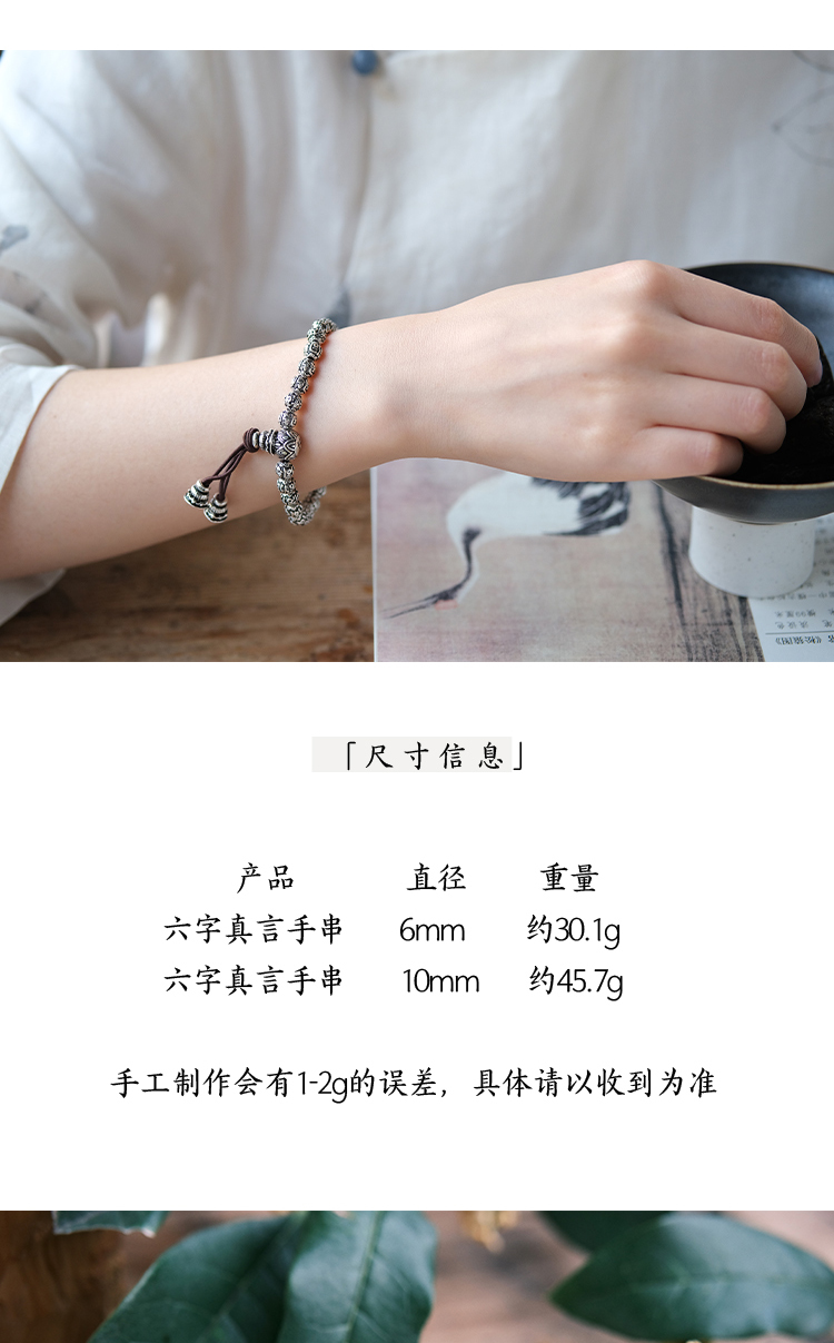米马生活 S990足银六字箴言梵文念珠手串 喹(ong)嘛(ma)呢(ni)以(bei)咪(mei)件( hong)
