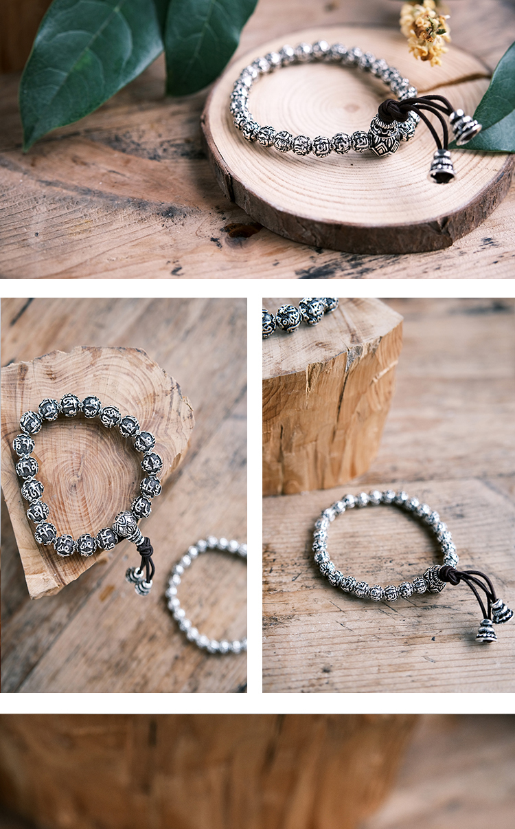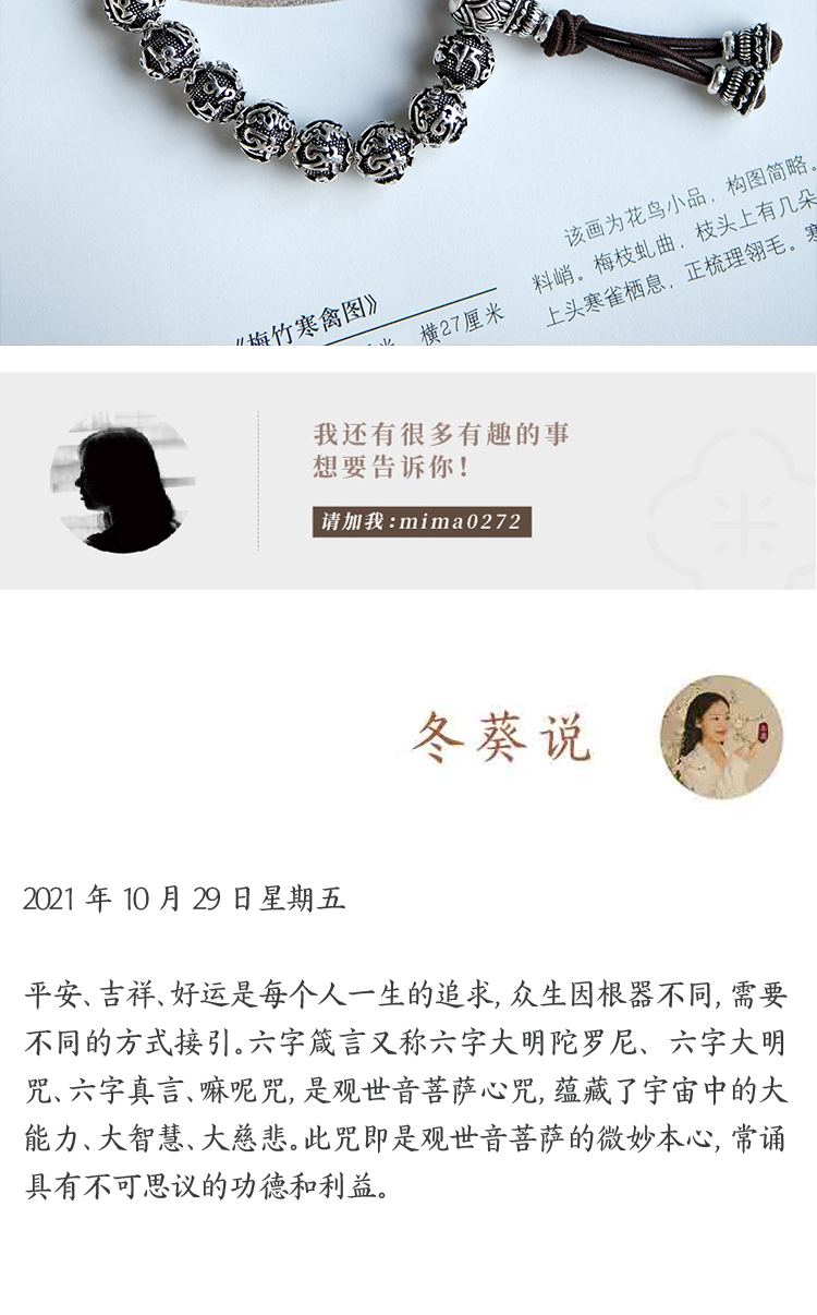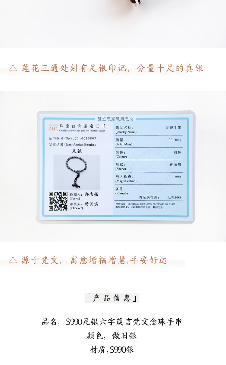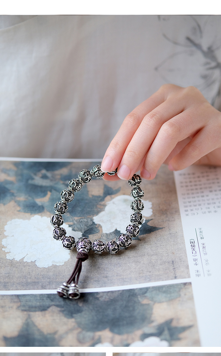 米马生活 S990足银六字箴言梵文念珠手串 喹(ong)嘛(ma)呢(ni)以(bei)咪(mei)件( hong)