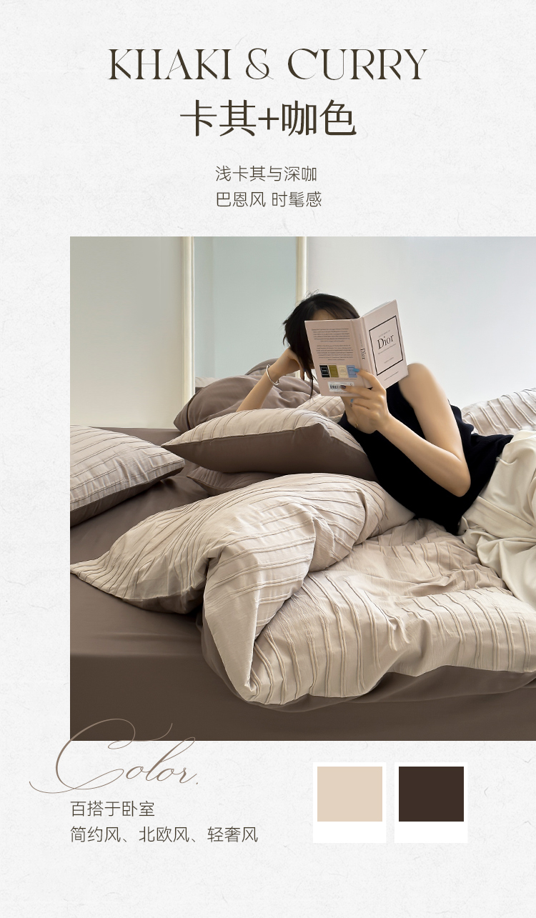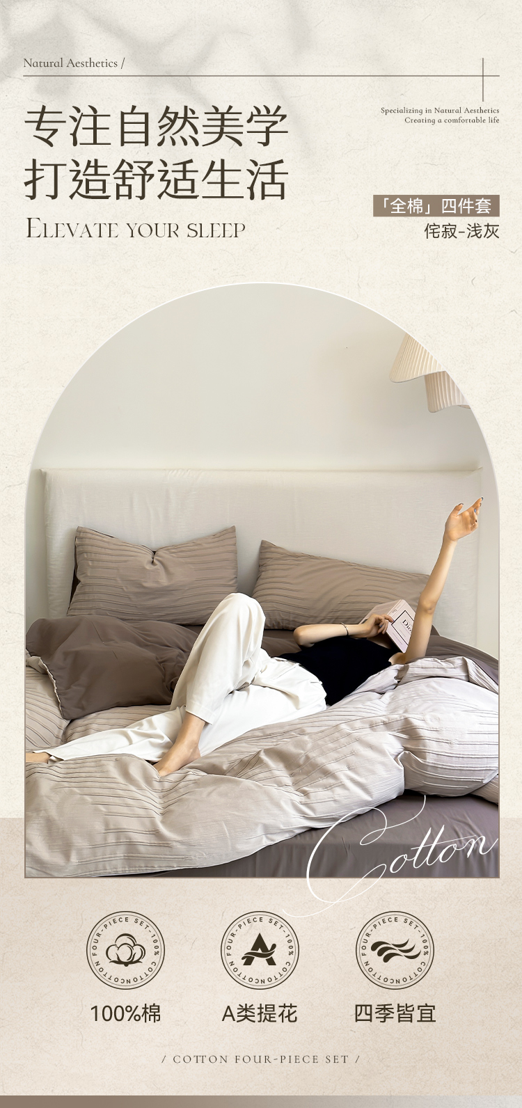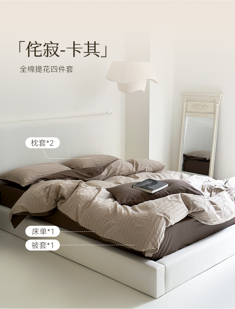 【小众设计师款床品]多喜爱侘寂风2025新款100%全棉提花水洗四件套 四季通用