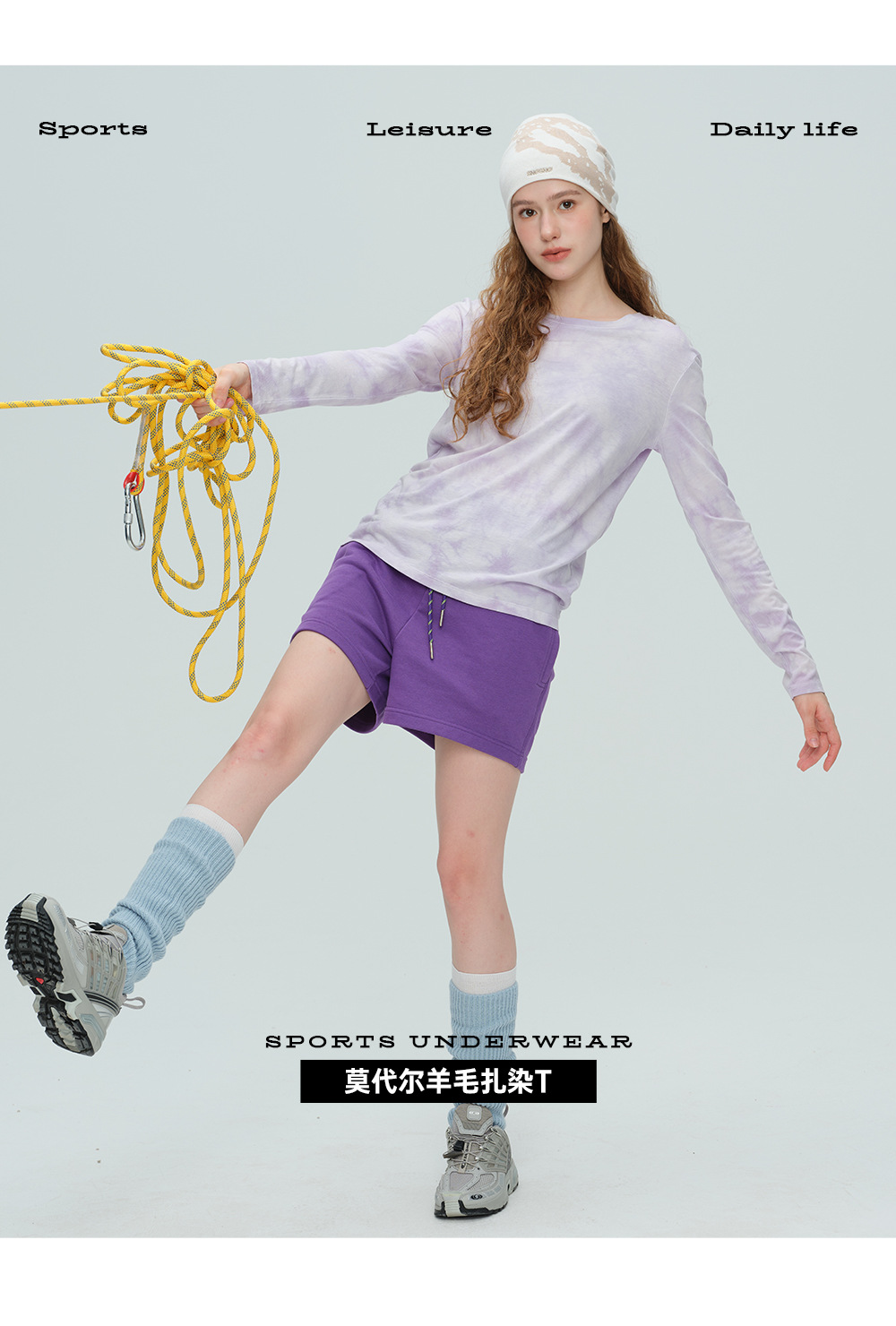唤醒身心~部分尺码预售!个性扎染天丝莫代尔绵羊毛运动长袖/短袖/短裤 渐变色瑜伽T恤运动健身跑步爬山