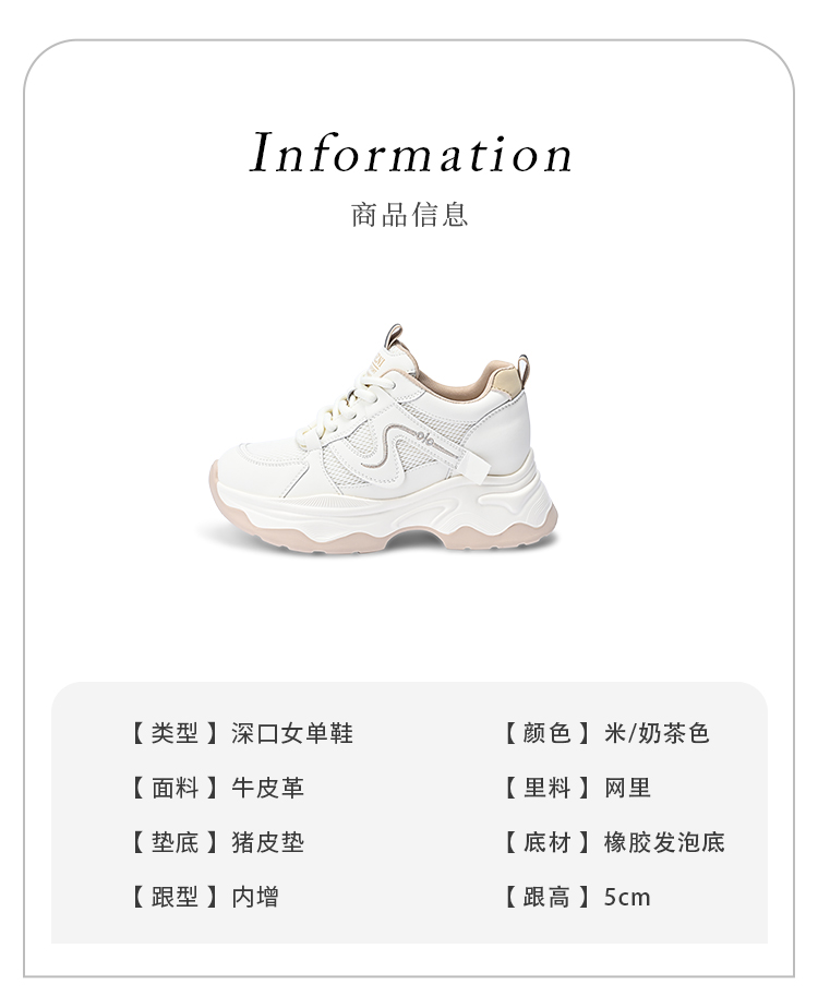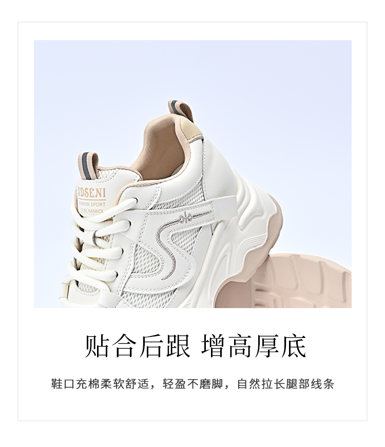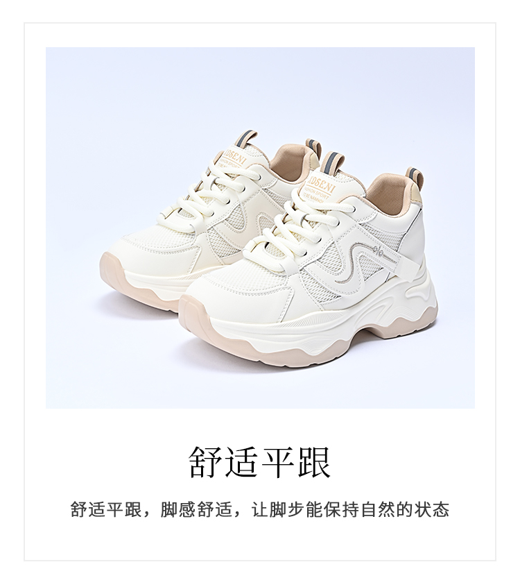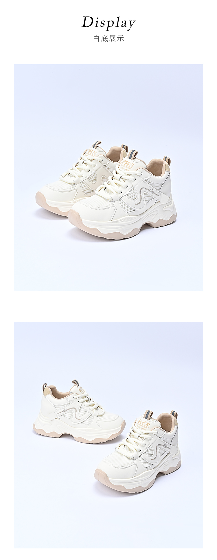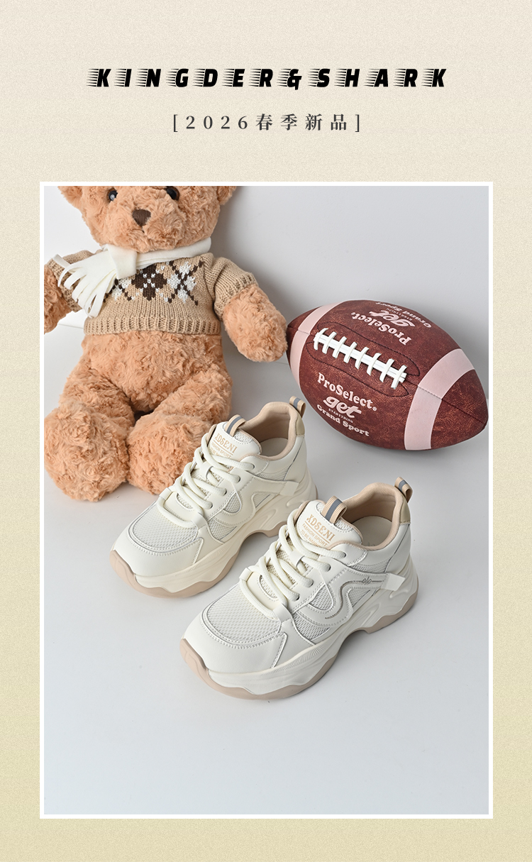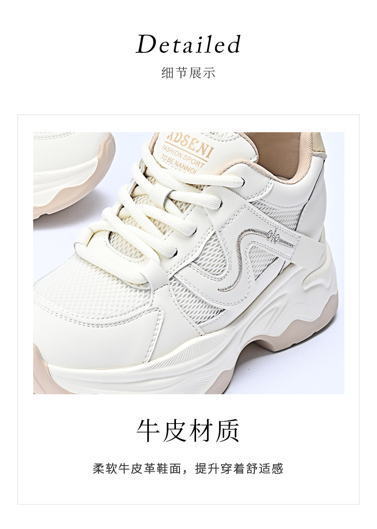 经典鲨2026年春专柜新品牛皮革内增高网面舒适透气休闲鞋女KW160-617061