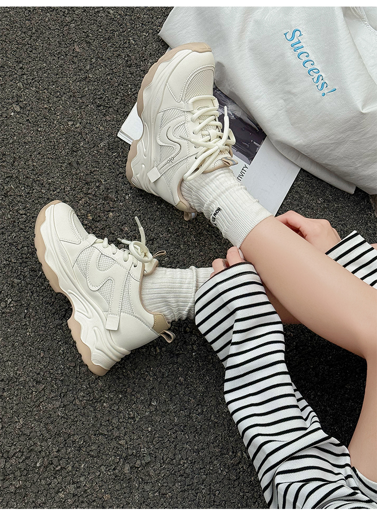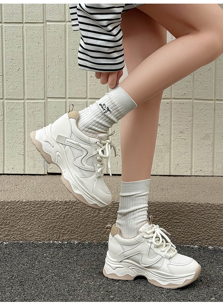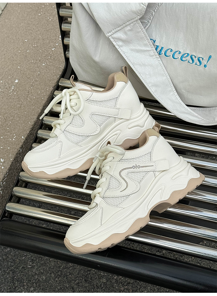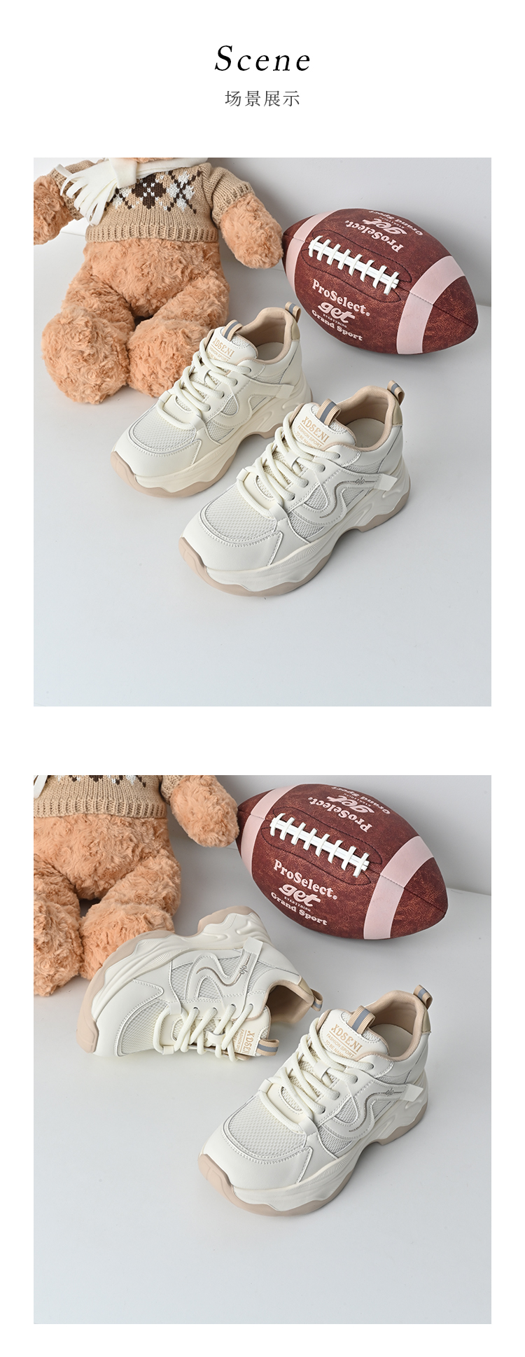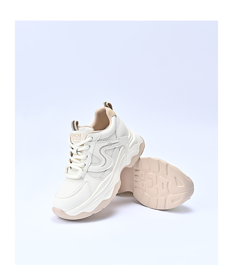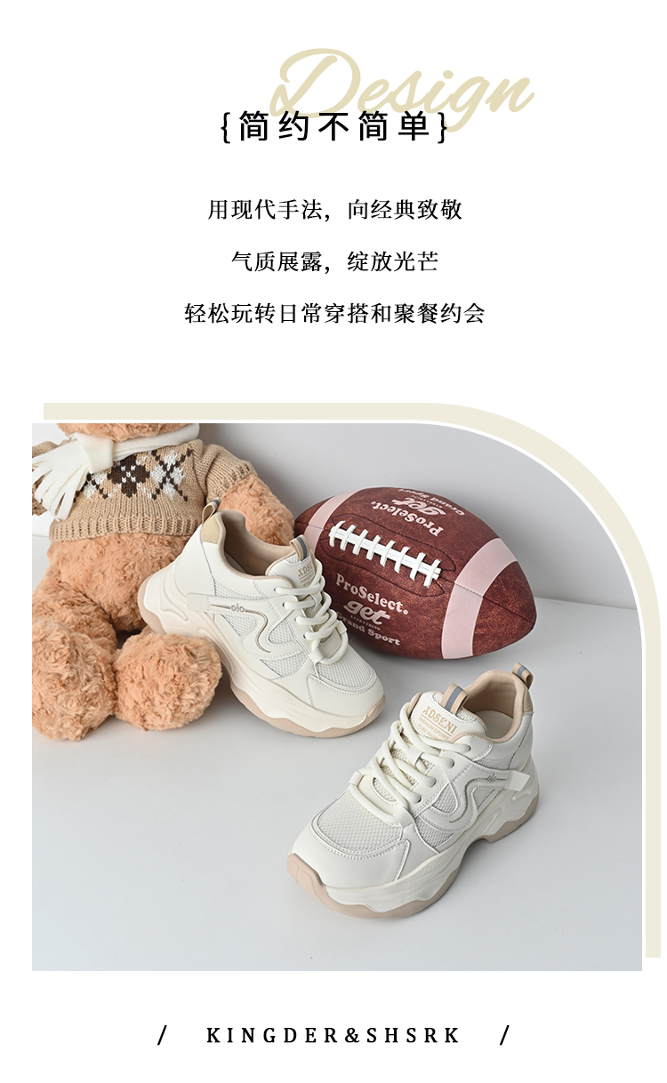 经典鲨2026年春专柜新品牛皮革内增高网面舒适透气休闲鞋女KW160-617061