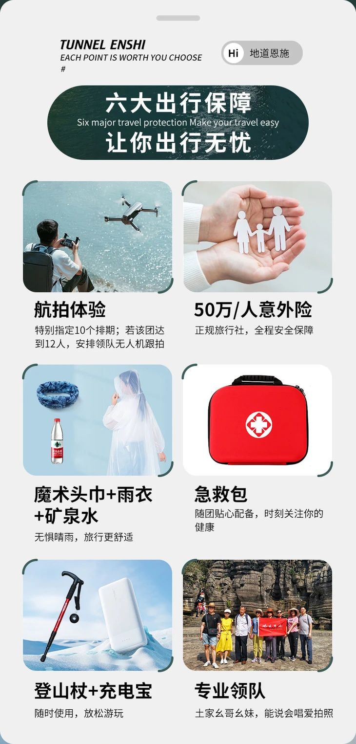 恩施属于山区,如遇特殊情况(如下特大暴雨),组织方有权根据情况调整行程。