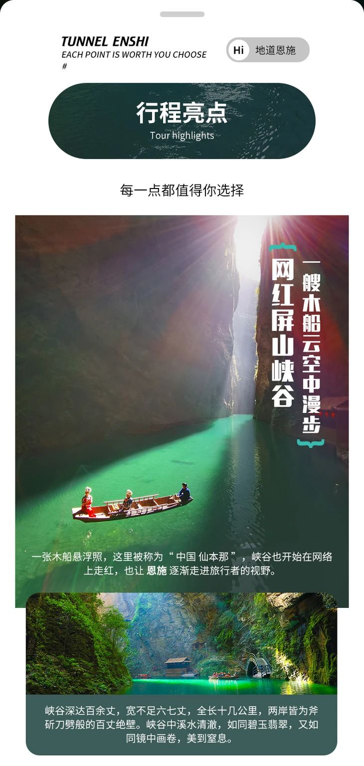 D2:恩施—屏山峡谷—宣恩;(网红飘浮船,清山碧水)