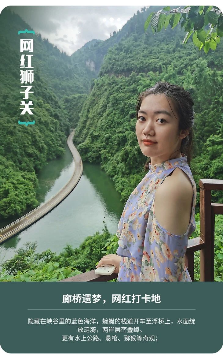 乘车前往【狮子关网红桥】,狮子关为宣恩三大古雄关之一,这里现在被亲切的成为“廊桥遗梦”,道未动水先漾,形成了一道天然的风景。