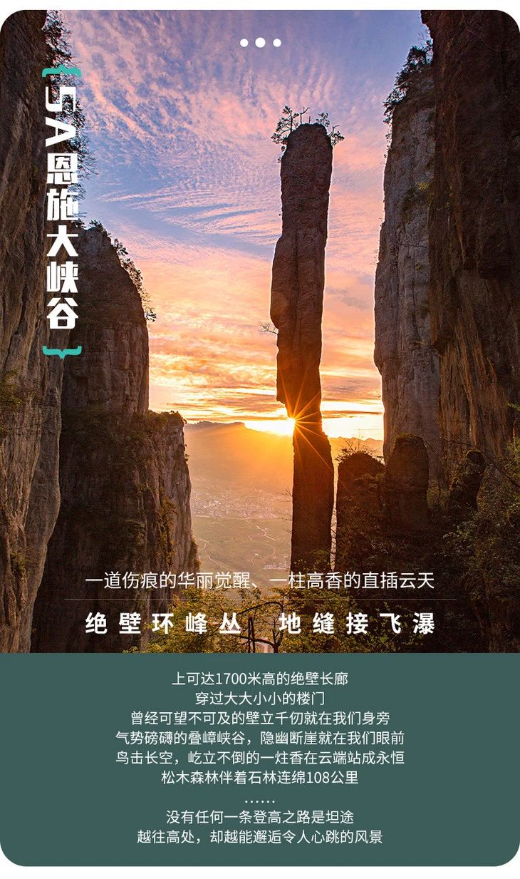 5.恩施大峡谷上行索道105元、鹿院坪上下行电梯各90元(非必消项目);