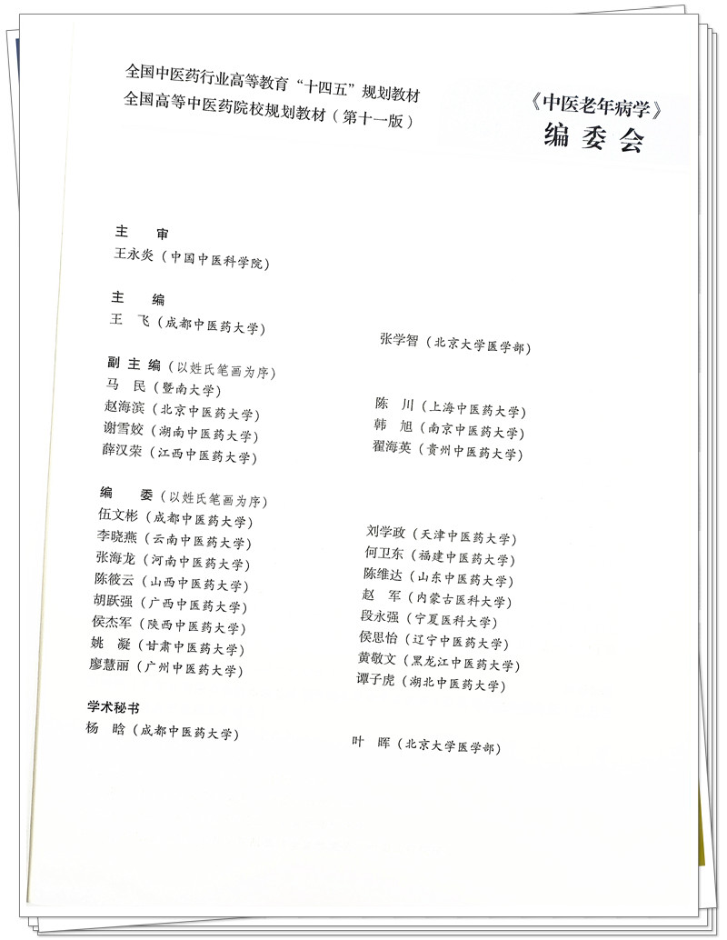 中医老年病学 王飞 张学智 主编 中国中医药出版社 全国中医药行业高等教育第十一版十四五规划教材