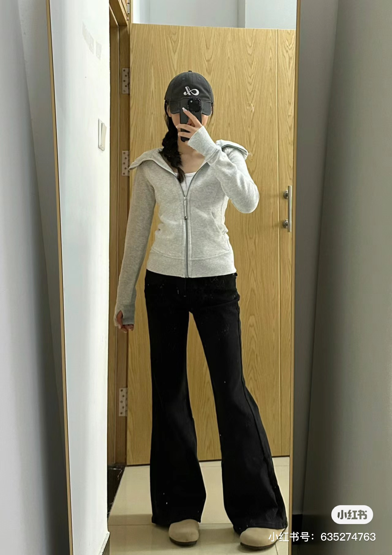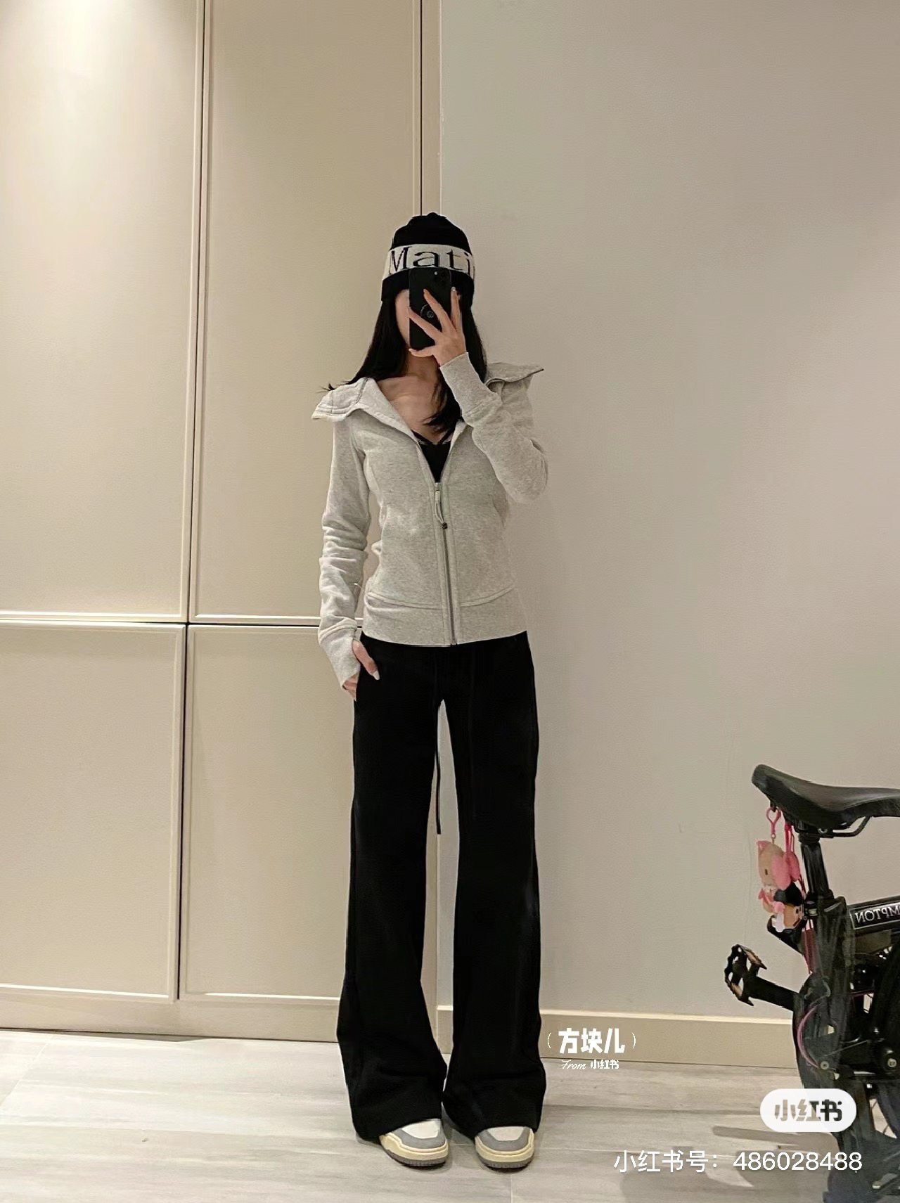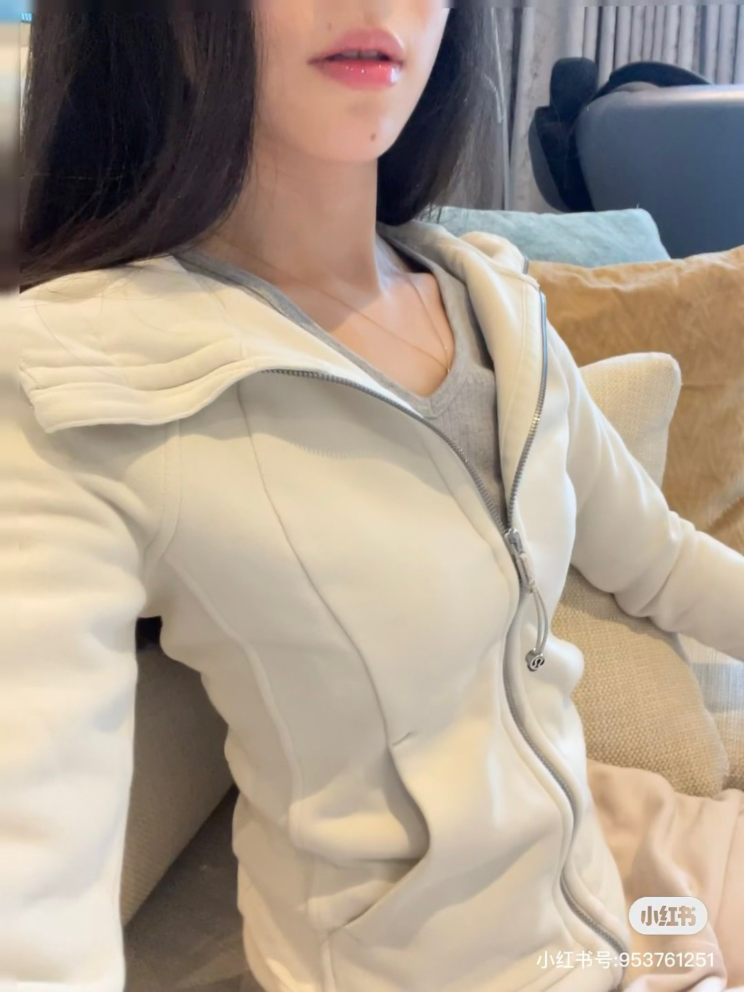 满小红薯都是这款米白色的穿搭,面料是米白掺杂着浅灰花色,真的很好看哈