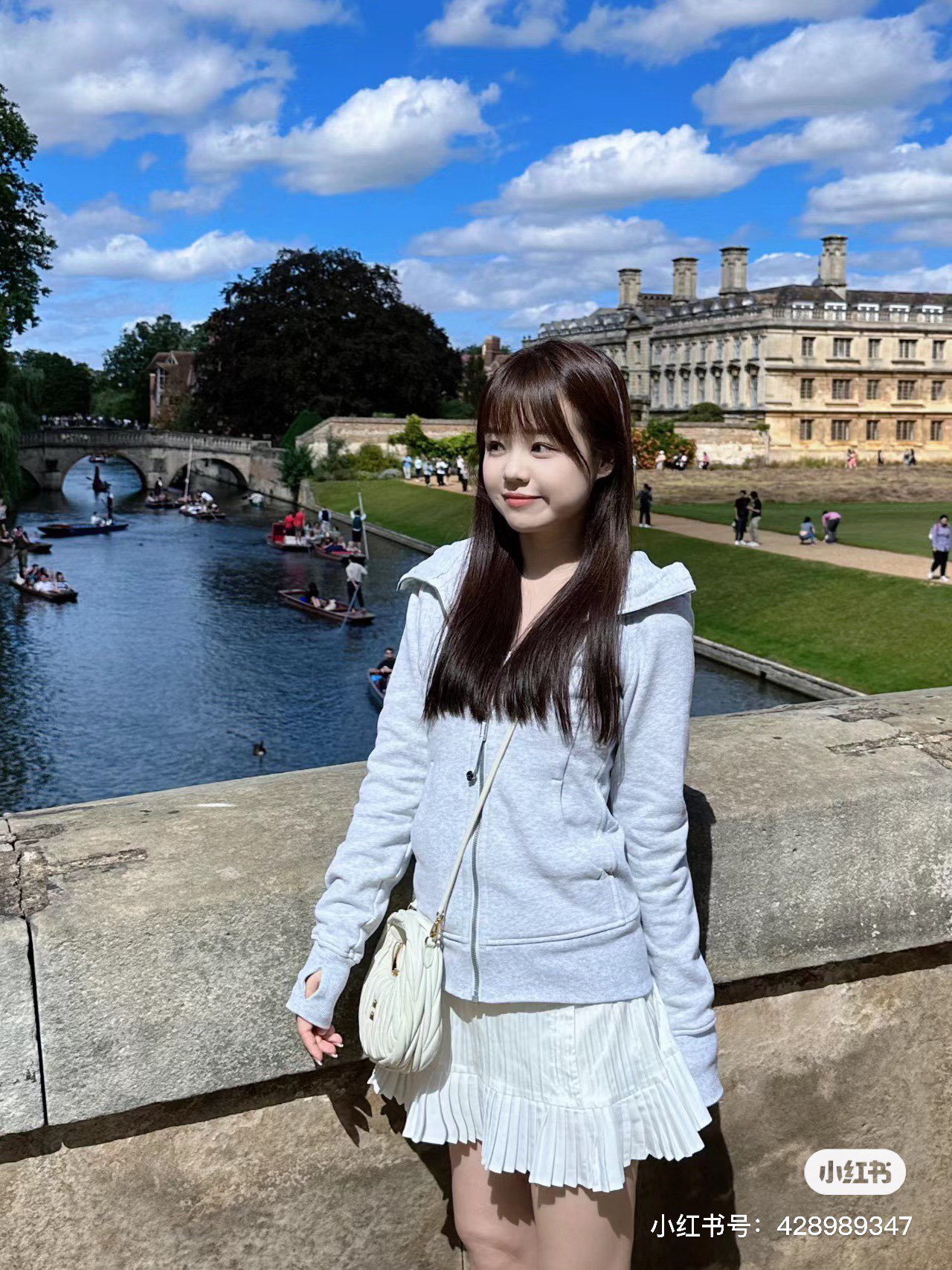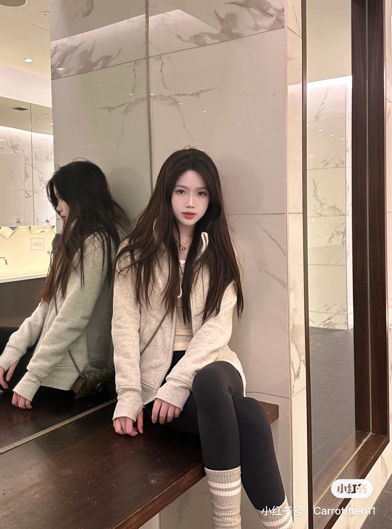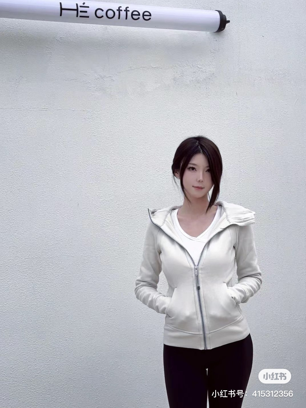 满小红薯都是这款米白色的穿搭,面料是米白掺杂着浅灰花色,真的很好看哈