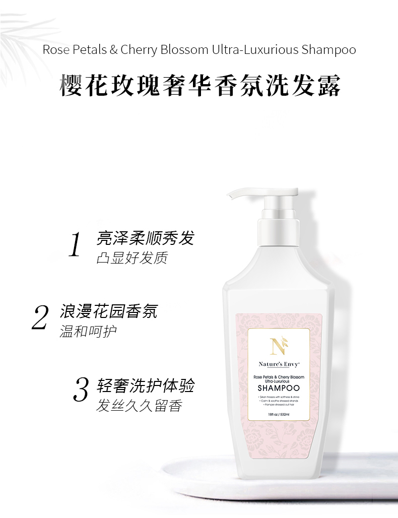 香氛护发 · Natures Envy天然之扉樱花和玫瑰 洗发水532ml+护发素532ml|品牌直发