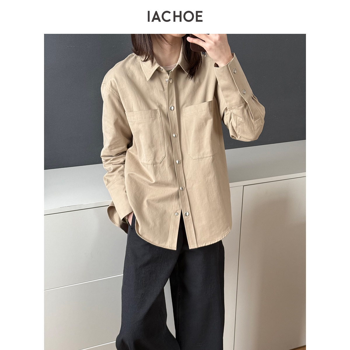 棉仓3621507004-IACHOE工装风卡其色衬衫