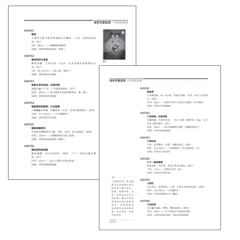 本书共十册,主要收录了我国2017—2019年的绘本专题中文图书文献信息,包括流水号、题名项、责任者项、出版项、载体形态项、丛书项等。
