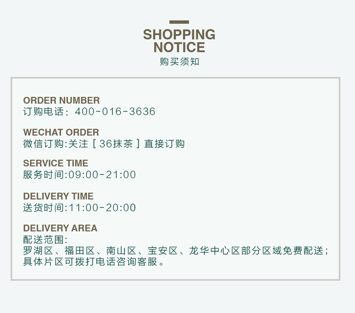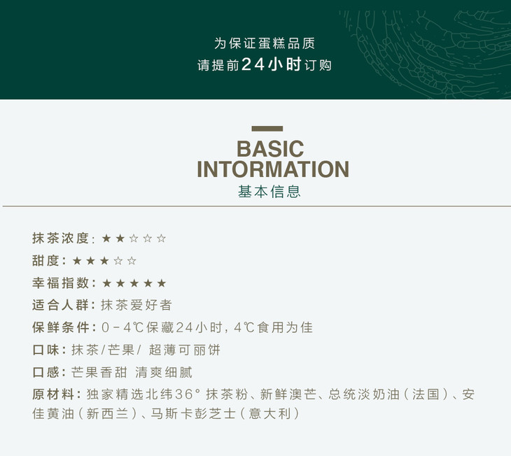 我们目前拥有36MATCHART和36cake两个品牌,主营抹茶甜品与新鲜蛋糕,深受数百万抹茶控和甜品控的拥趸。好吃安心,奶油只选法国铁塔。全城3小时免 费速达。客服热线400-016-3636