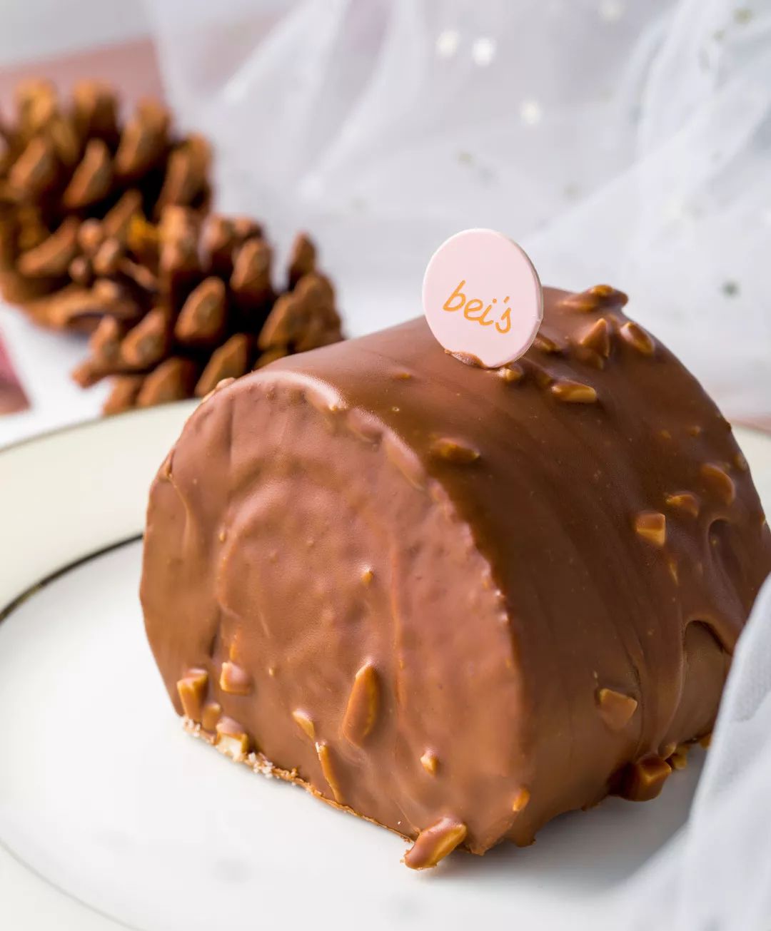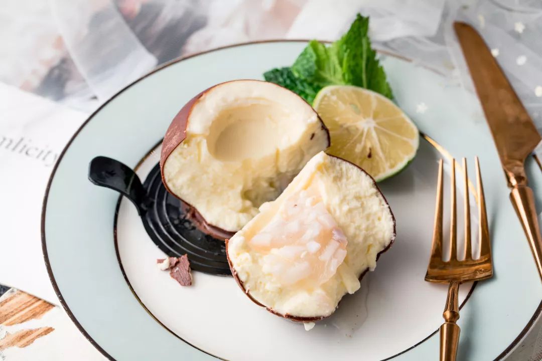 香浓的巧克力外壳包裹着丝滑的慕斯