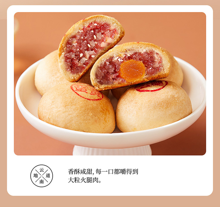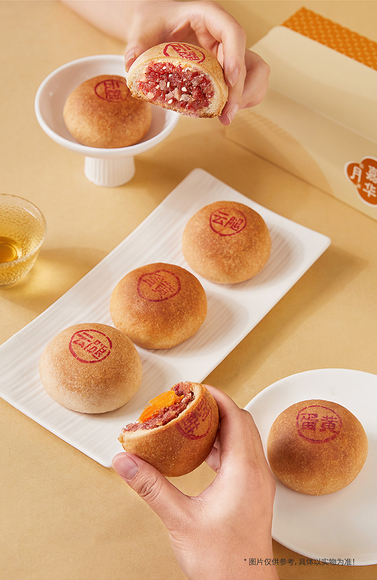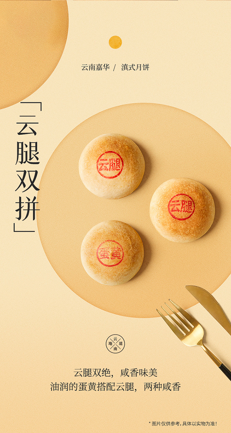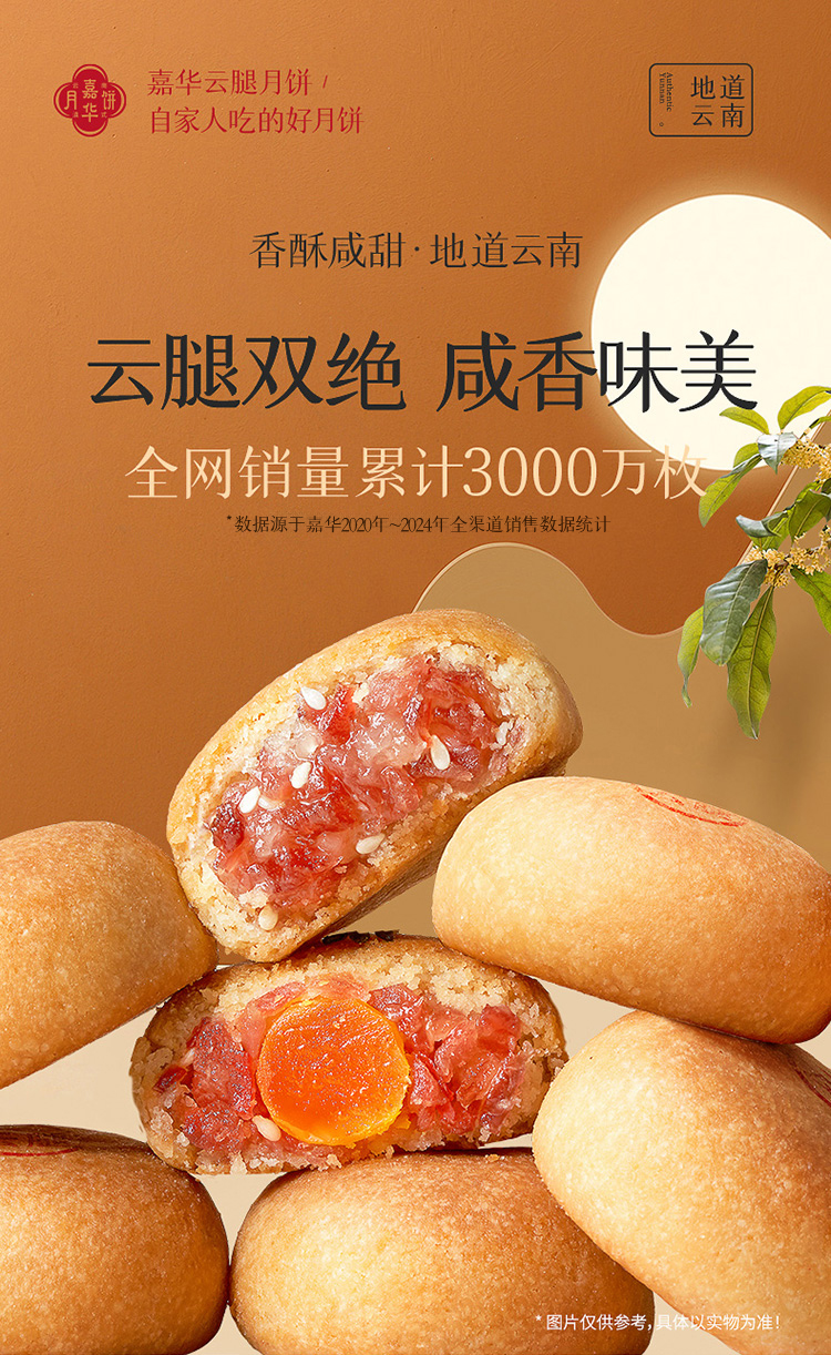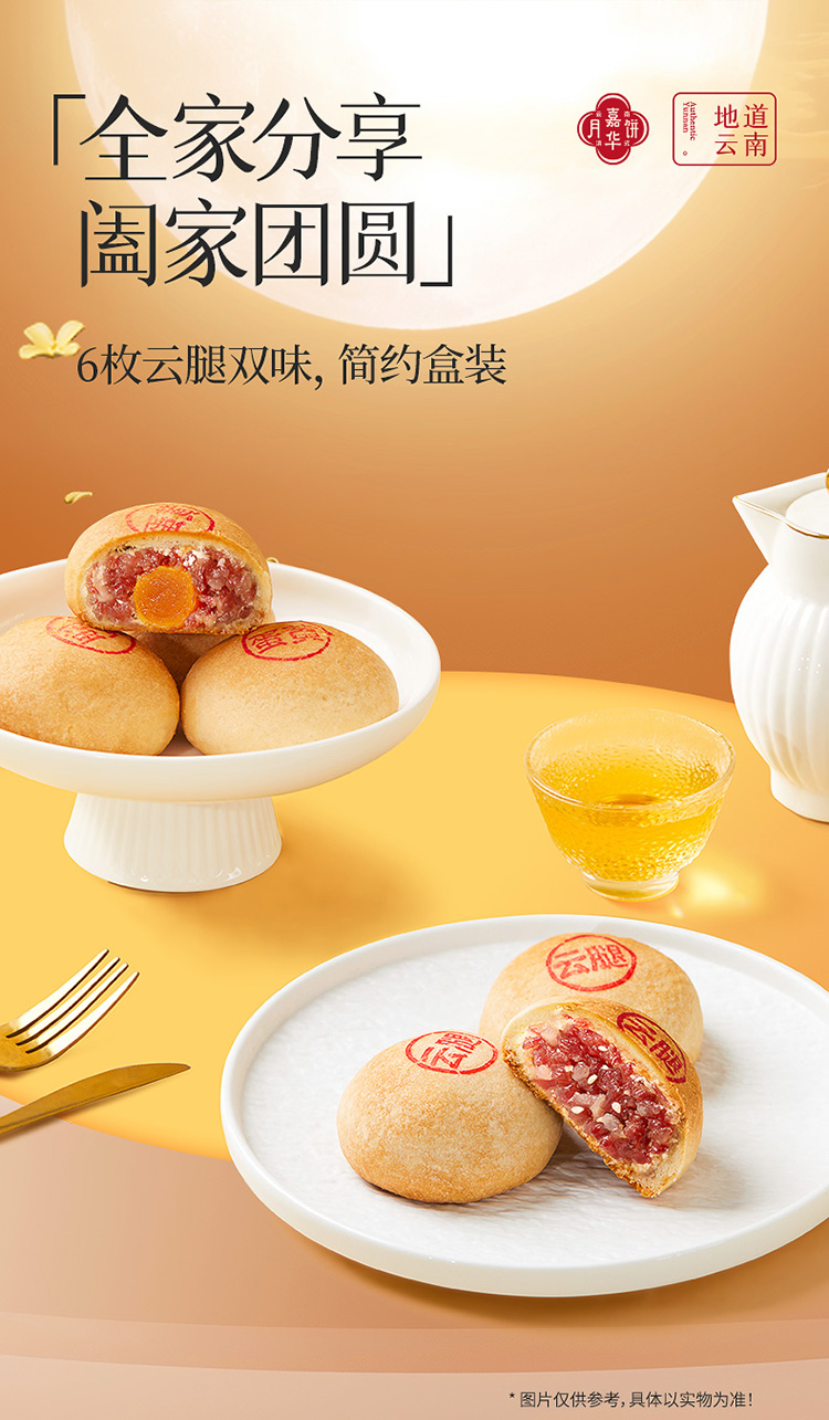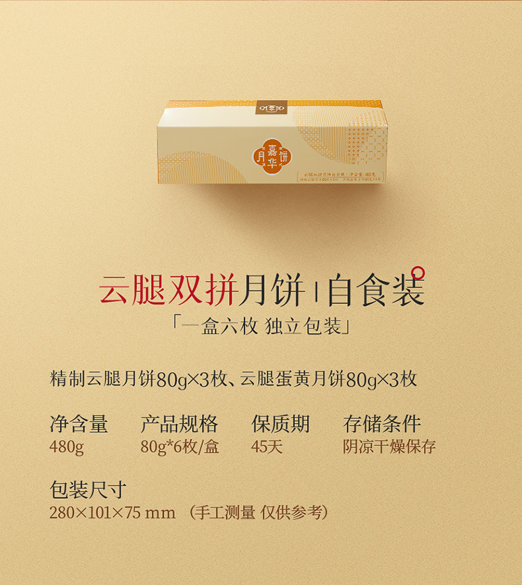 嘉华月饼 云腿双拼月饼自食装 6枚装 480g