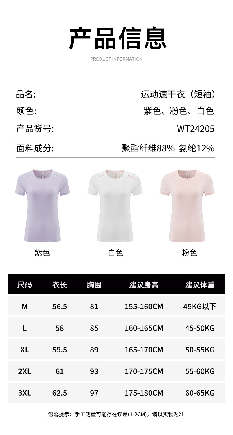跃牌【PF系列】春夏新款跑步瑜伽T恤宽松透气轻薄女款速干短袖圆领T恤WT24205