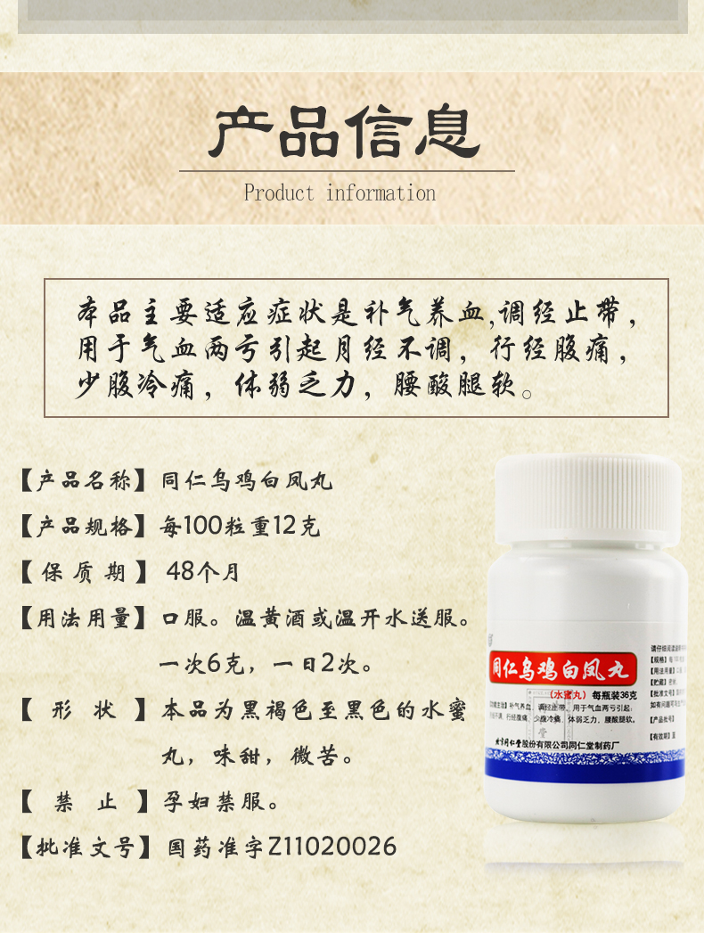 同仁堂乌鸡白凤丸36g正品 妇科女人调理补气养血调月经痛经中药