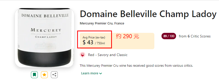 截图来源:Wine Searcher(图中“Premier Cru”标注有误,此酒为村庄级)